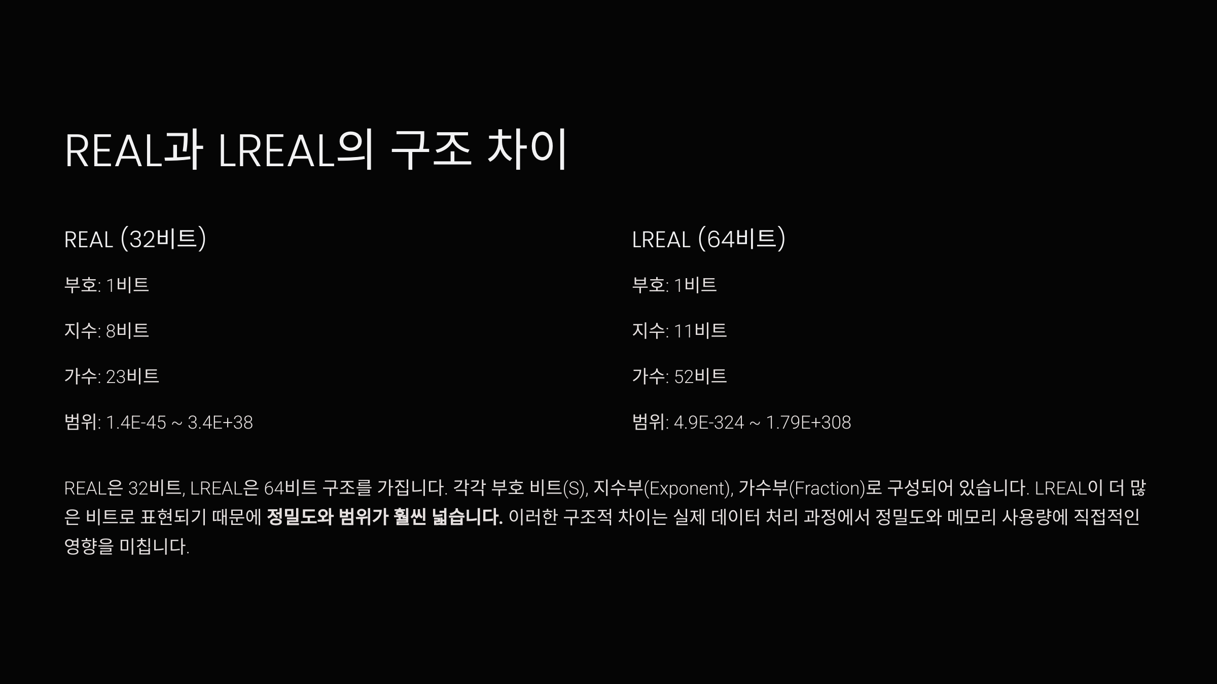 | 항목 | REAL (32비트) | LREAL (64비트) |