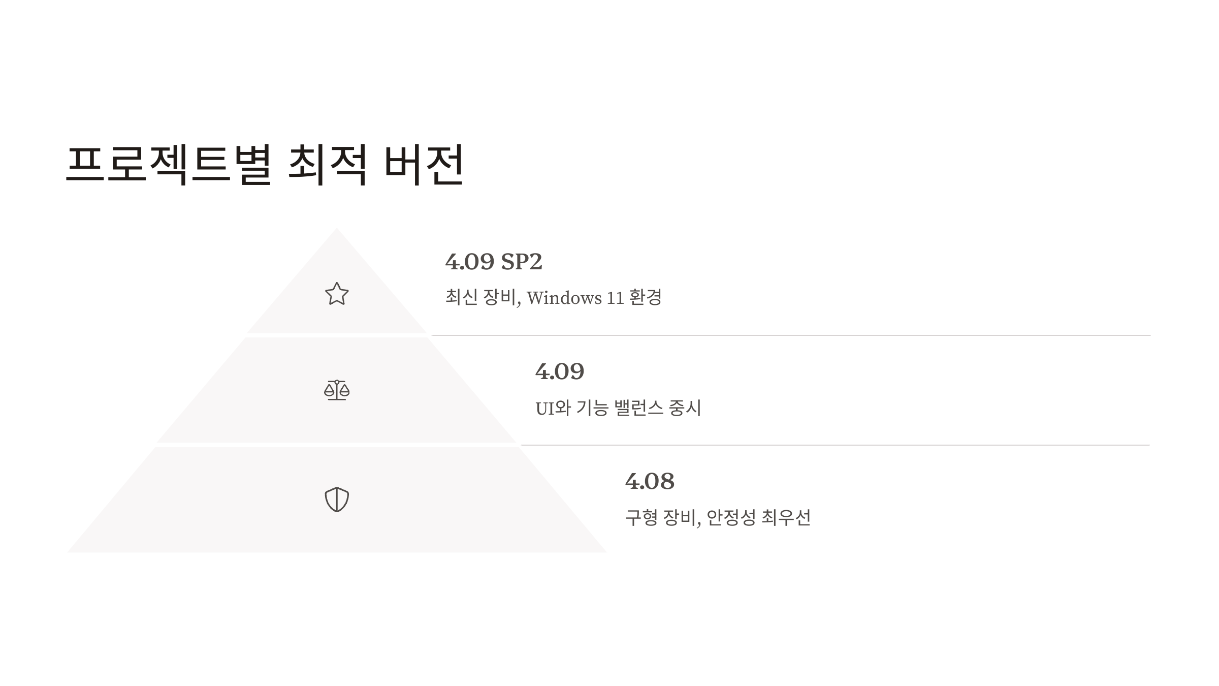 상황에 따라 최적의 선택이 달라질 수 있습니다. 예를 들어 구형 장비를 주로 다루고, 안정성이 최우선이라면 4.08이 적합합니다. 반면 새로운 PLC나 Windows 11 환경에서 작업한다면 4.09 SP2가 훨씬 효율적이에요. 중간 지점에서 UI와 기능의 밸런스를 맞추고 싶다면 4.09가 괜찮은 선택이 될 수 있습니다. 중요한 건 ‘현재 환경’과 ‘작업 목적’을 기준으로 선택하는 것이죠.