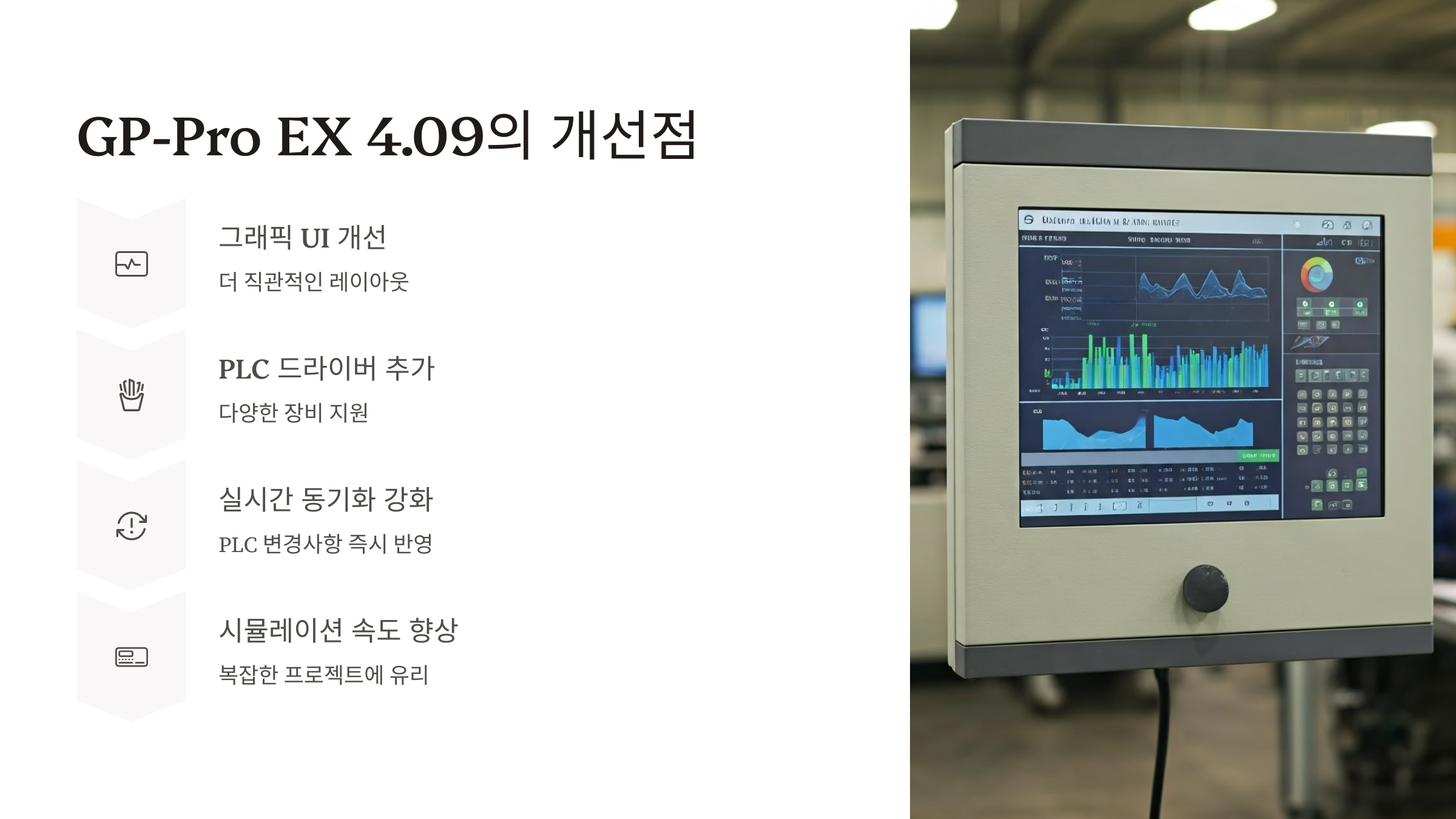 - ✅ GP-Pro EX 4.09: UI 개선, 시뮬레이션 속도 향상