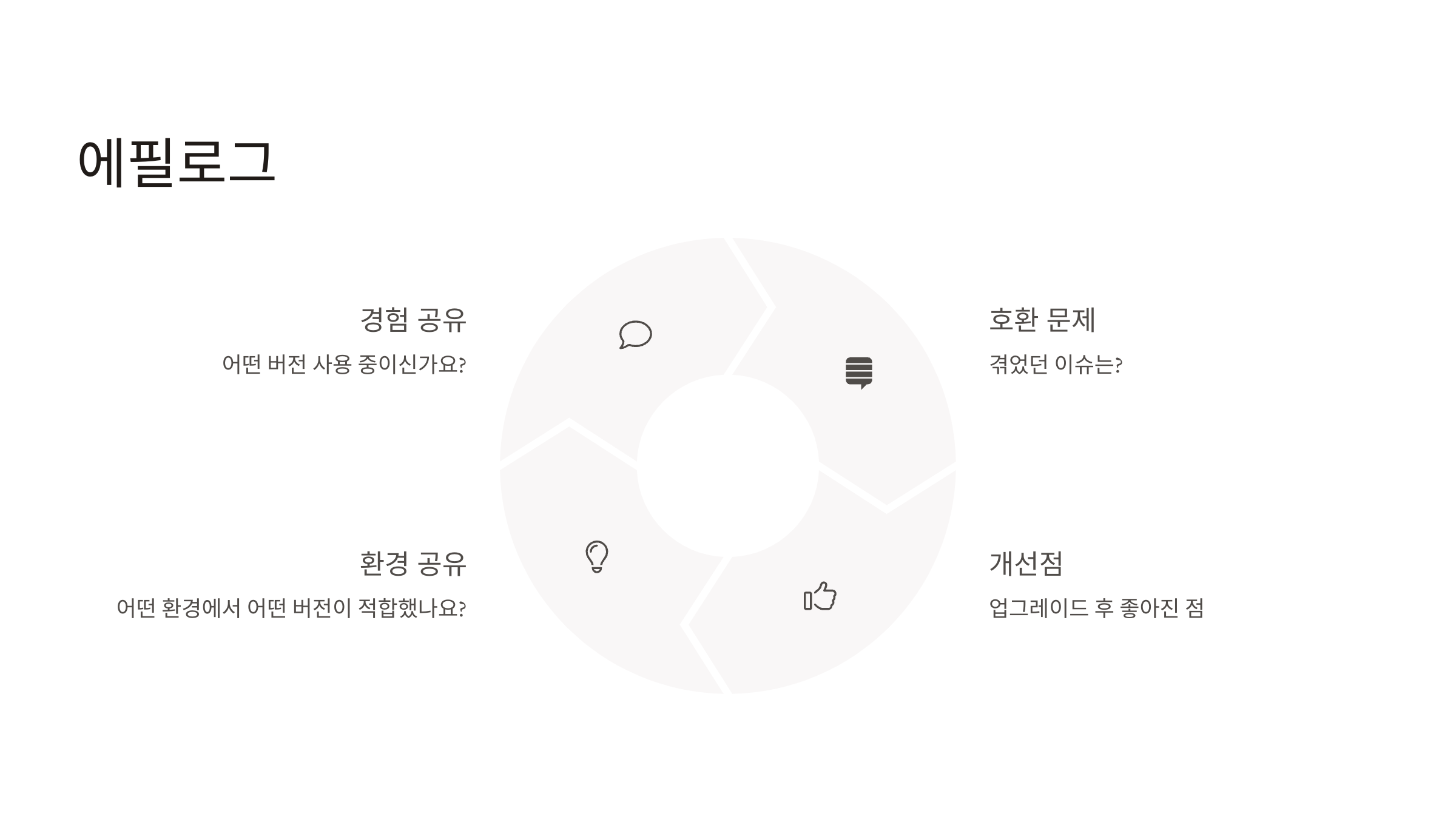 여러분은 어떤 버전을 주로 사용하시나요? 실무에서 겪었던 호환 문제나 업그레이드 후 개선된 점이 있다면 댓글로 공유해주세요! 어떤 환경에서 어떤 버전이 잘 맞았는지도 함께 이야기해보면 좋겠습니다. 처음엔 그냥 넘어갈 뻔했던 버전 차이, 막상 써보니 정말 다르더라고요. 특히 프로젝트 규모가 커질수록 이 차이는 점점 커지는 것 같아요.