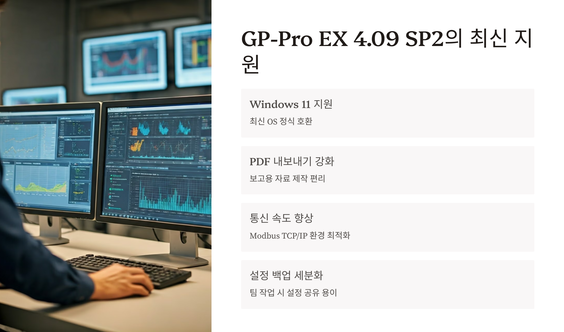 - ✅ GP-Pro EX 4.09 SP2: 최신 OS 대응, 통신속도, PDF 기능 강화