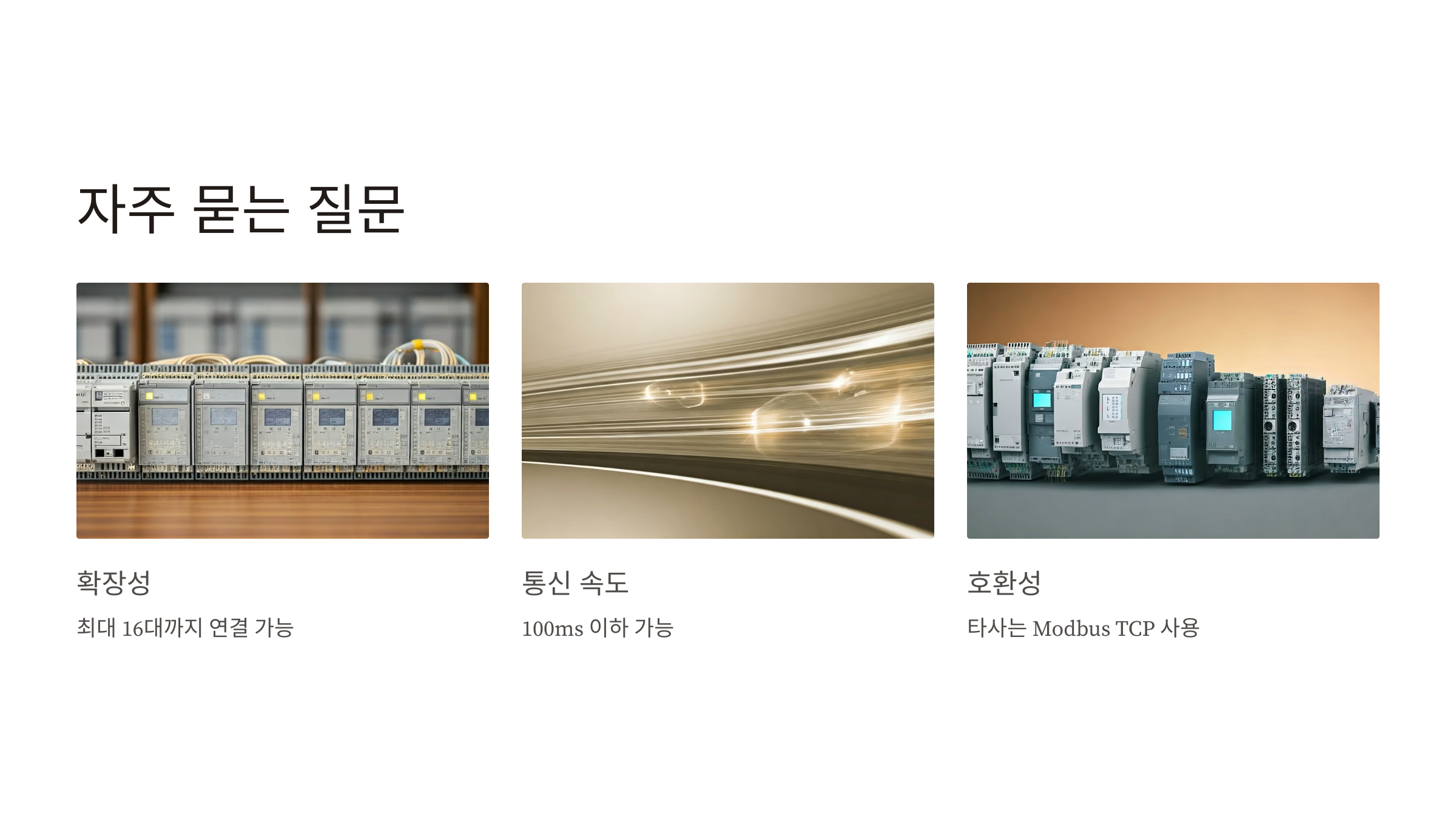 XG5000은 LS전자의 대표 PLC로, 다양한 산업용 장비와 쉽게 연동할 수 있도록 설계되어 있어요. 특히 FEnet 모듈을 이용한 이더넷 통신 기능이 있어, 온도컨트롤러(예: 오므론 E5CC), 압입기(예: 토오시압입기), 계측기(예: 키엔스 측정기)와도 데이터를 쉽게 교환할 수 있습니다. 이 장비들은 대부분 Modbus TCP나 RS485 기반의 통신을 지원하는데, XG5000은 이를 직접 읽고 쓰거나, 다른 PLC와 P2P 방식으로 연결해서 공유할 수 있어요. 예를 들어, PLC A가 온도 데이터를 받아서 PLC B로 넘겨주고, PLC B는 이를 기준으로 압입기를 제어하는 방식이죠. 이런 구조가 점점 더 많이 쓰이고 있습니다.