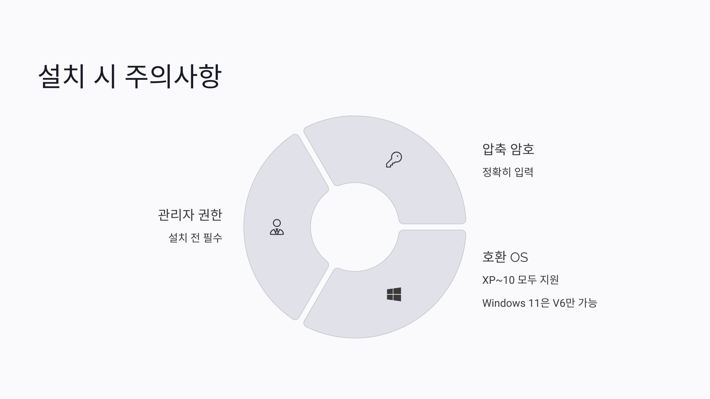 설치 전에 꼭 관리자 권한으로 실행하세요. 또, 압축 해제할 때 암호를 정확히 입력해야 오류가 나지 않아요.