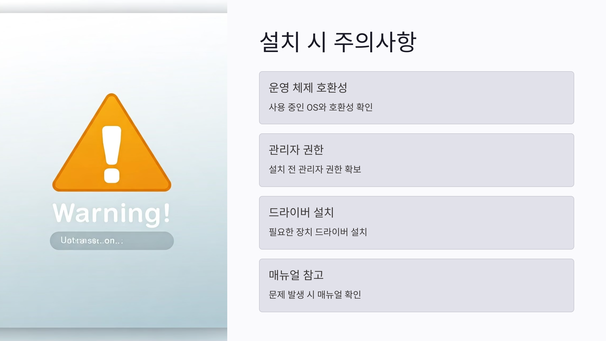 - 매뉴얼 참고: 설치 및 사용 중 문제가 발생할 경우, 제공되는 매뉴얼을 참고하여 문제를 해결하세요.