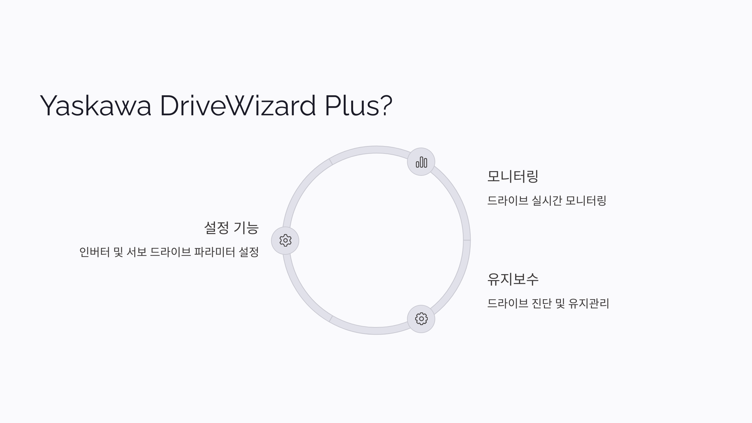 Yaskawa의 DriveWizard Plus는 Yaskawa 인버터 및 서보 드라이브의 설정, 모니터링, 유지보수를 위한 소프트웨어입니다. 이 도구를 통해 드라이브의 파라미터 설정, 실시간 모니터링, 진단 등을 수행할 수 있습니다.