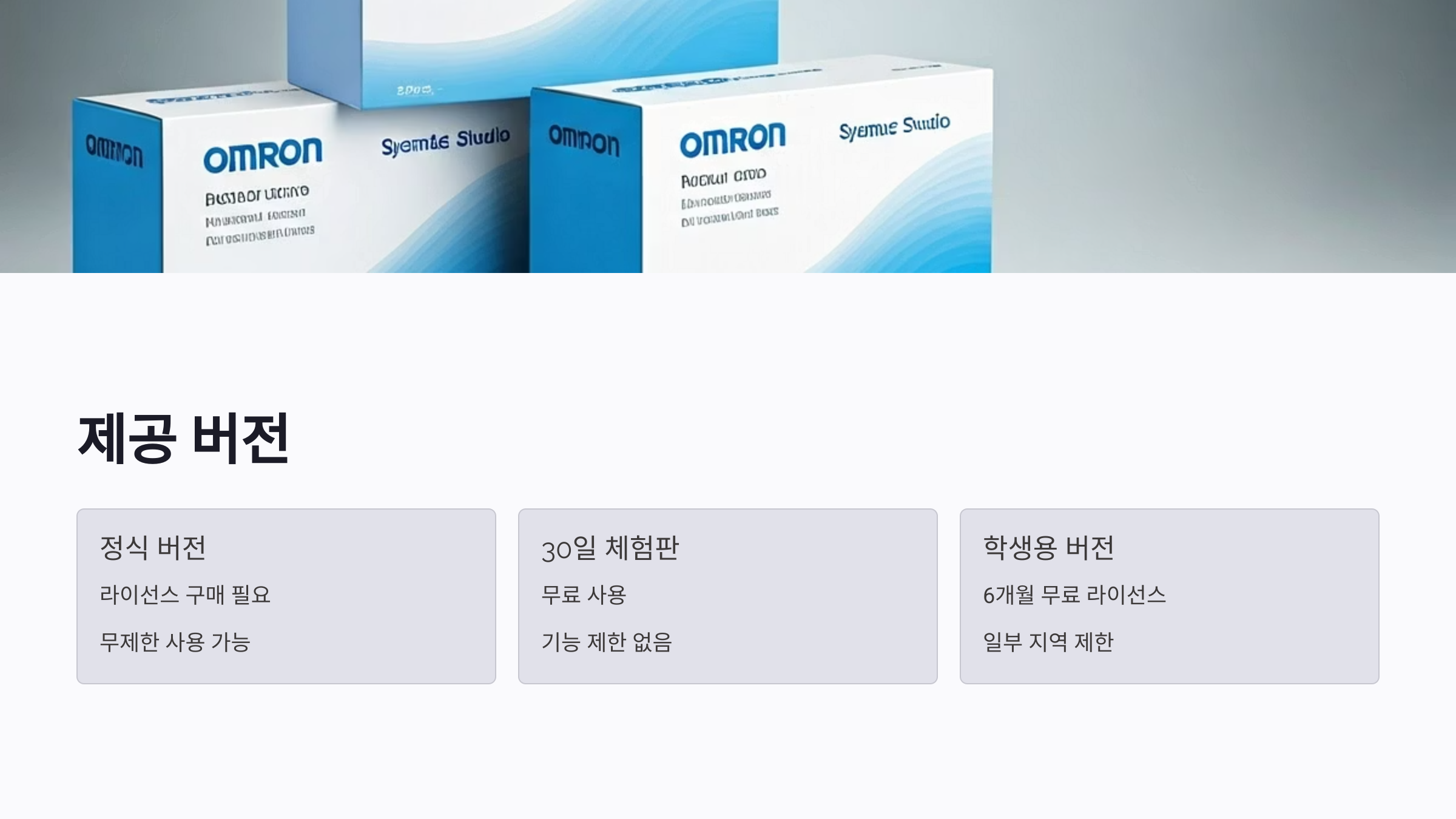 OMRON에서는 다음과 같은 버전의 Sysmac Studio를 제공합니다: