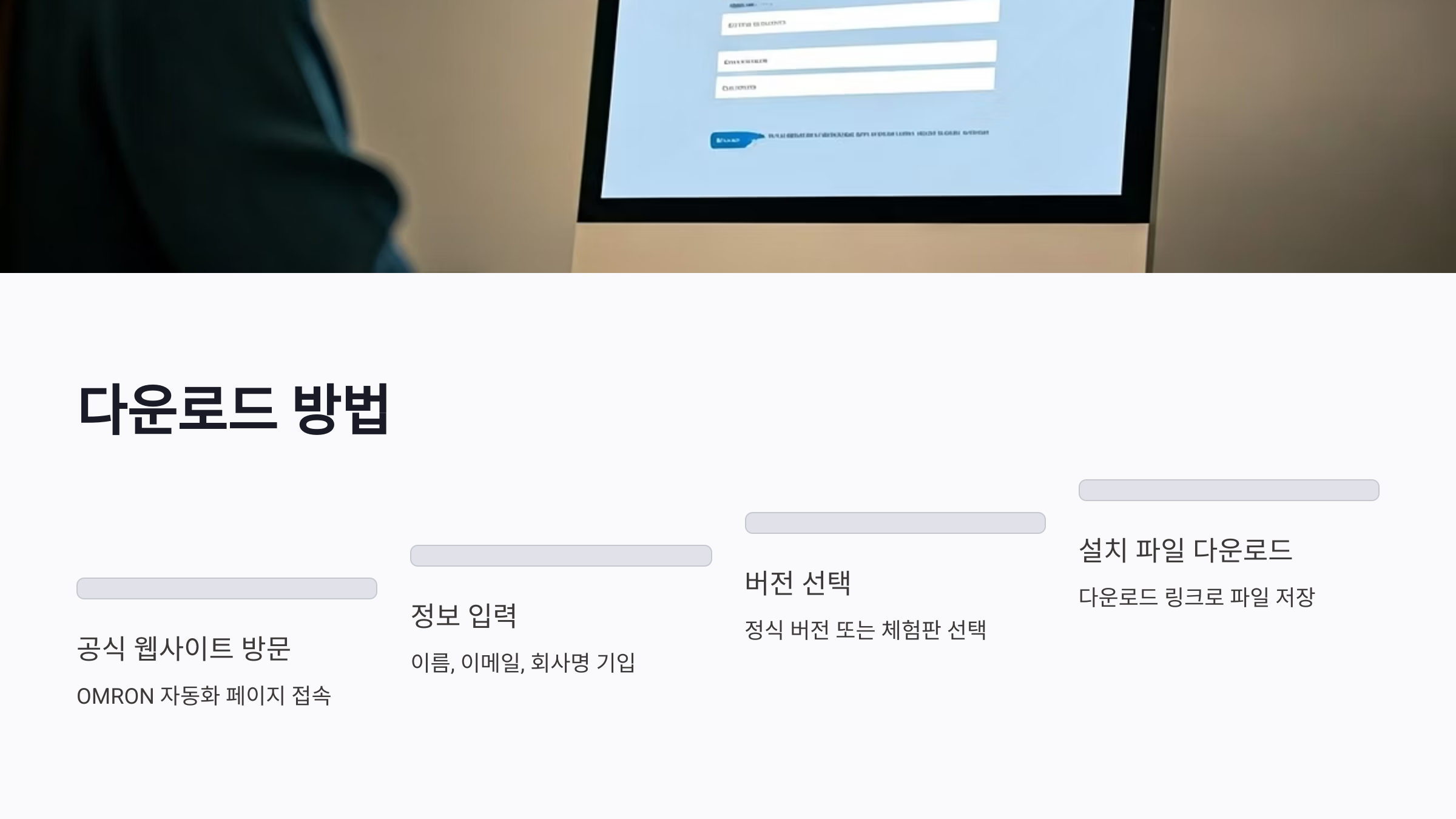OMRON의 통합 개발 환경인 Sysmac Studio를 다운로드하고 설치하는 방법을 안내해드릴게요. 이 소프트웨어는 PLC, HMI, 모션 제어 등을 하나의 플랫폼에서 구성할 수 있어 자동화 시스템 개발에 필수적입니다.