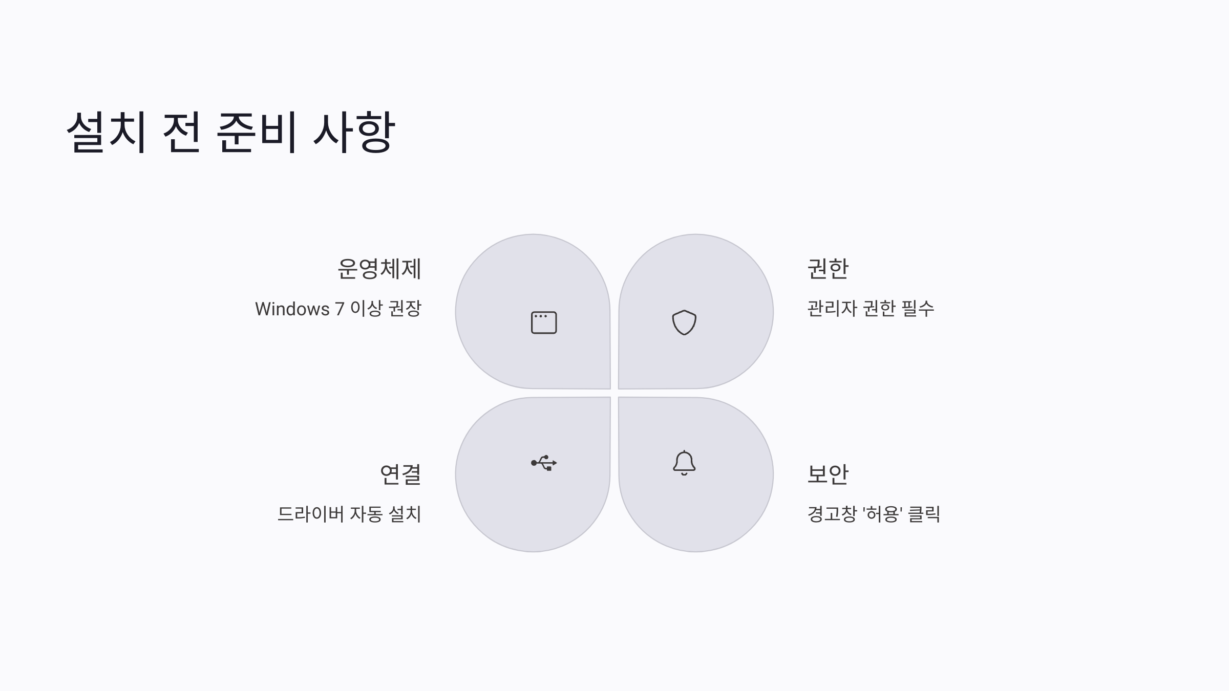 👉 관리자 권한으로 실행하지 않았을 가능성이 큽니다. 설치 파일 우클릭 → ‘관리자 권한으로 실행’ 선택해주세요.