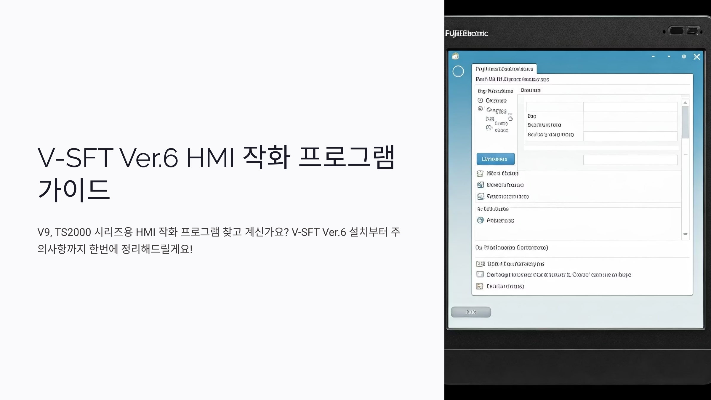 자동화 설비에서 HMI 화면을 설정할 때, 가장 먼저 필요한 게 바로 '작화 프로그램'이죠. Fuji Electric의 HMI 시리즈를 사용하고 있다면 필수로 설치해야 하는 게 바로 V-SFT Ver.6입니다.