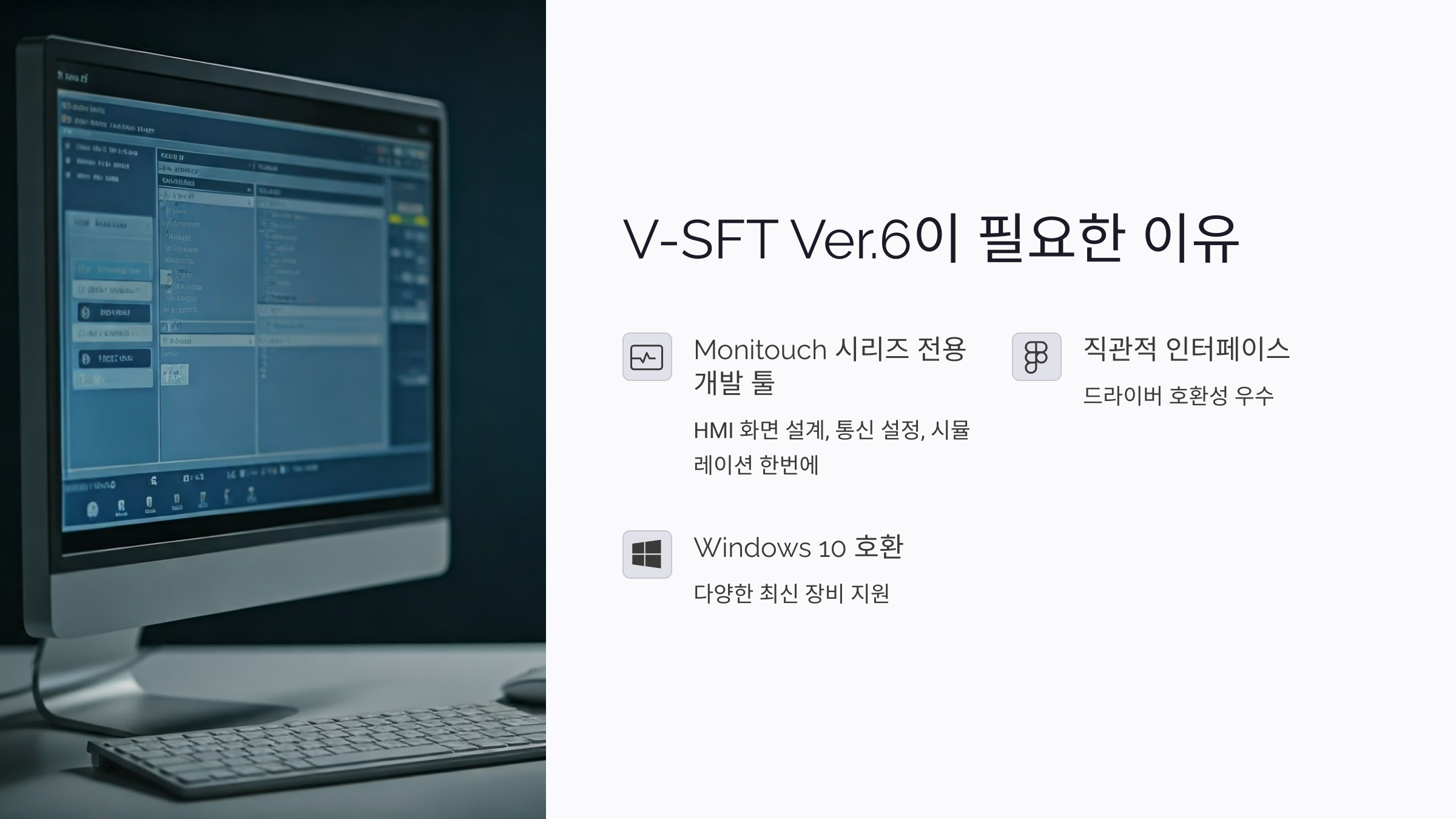 V-SFT는 FUJI의 Monitouch 시리즈용 전용 개발 툴로, HMI 화면 설계, 장비 통신 설정, 시뮬레이션까지 한 번에 처리할 수 있어요. 저는 TS2060을 설정할 때 처음 사용해봤는데, 인터페이스가 직관적이고 드라이버 호환도 잘 돼서 지금도 즐겨 사용합니다. 특히 V-SFT Ver.6은 Windows 10에서도 잘 작동하고, 다양한 최신 장비까지 지원하는 점이 정말 큰 장점이에요.