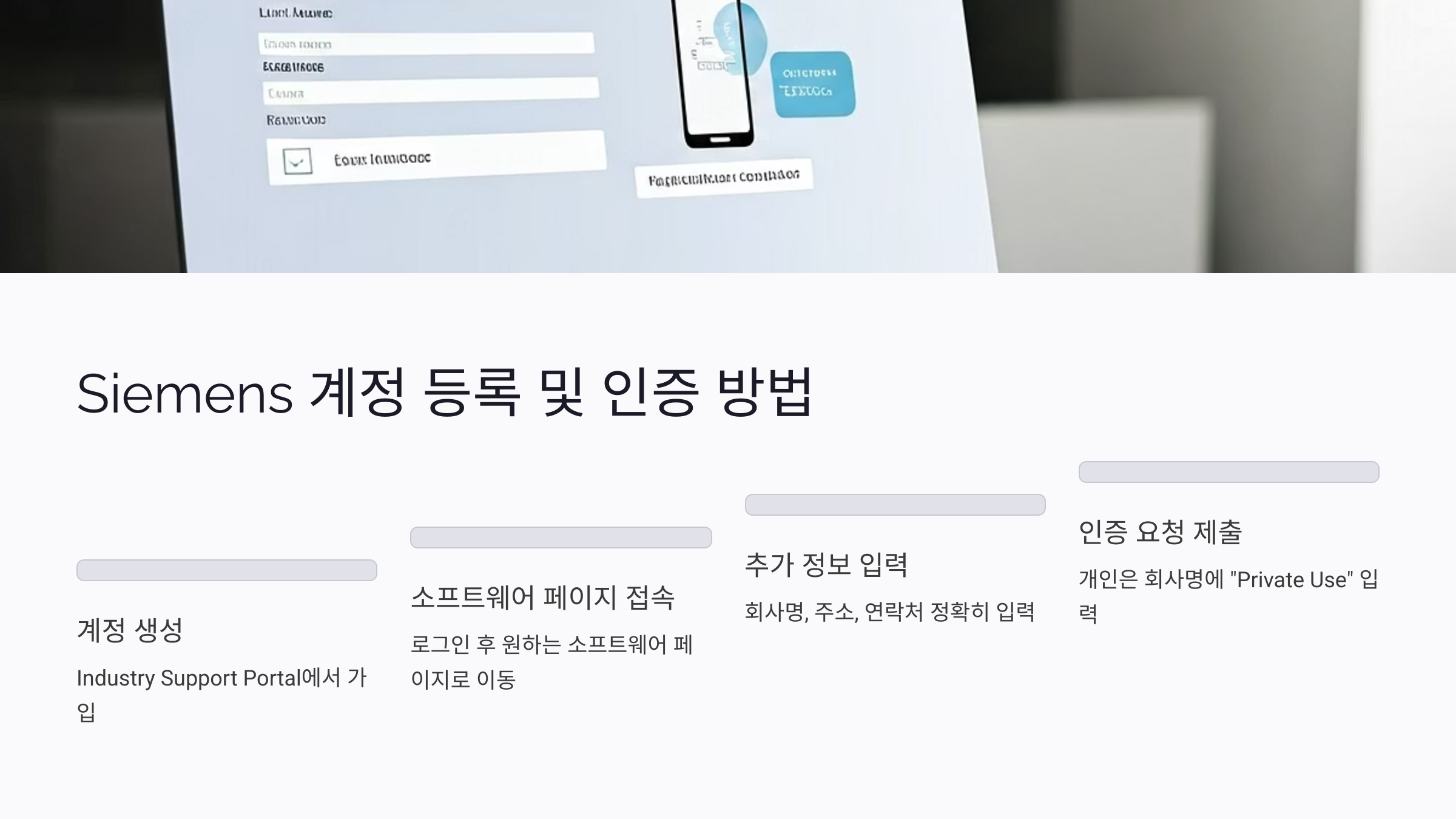 - Siemens 계정 생성: Siemens Industry Support Portal에서 계정을 생성합니다.