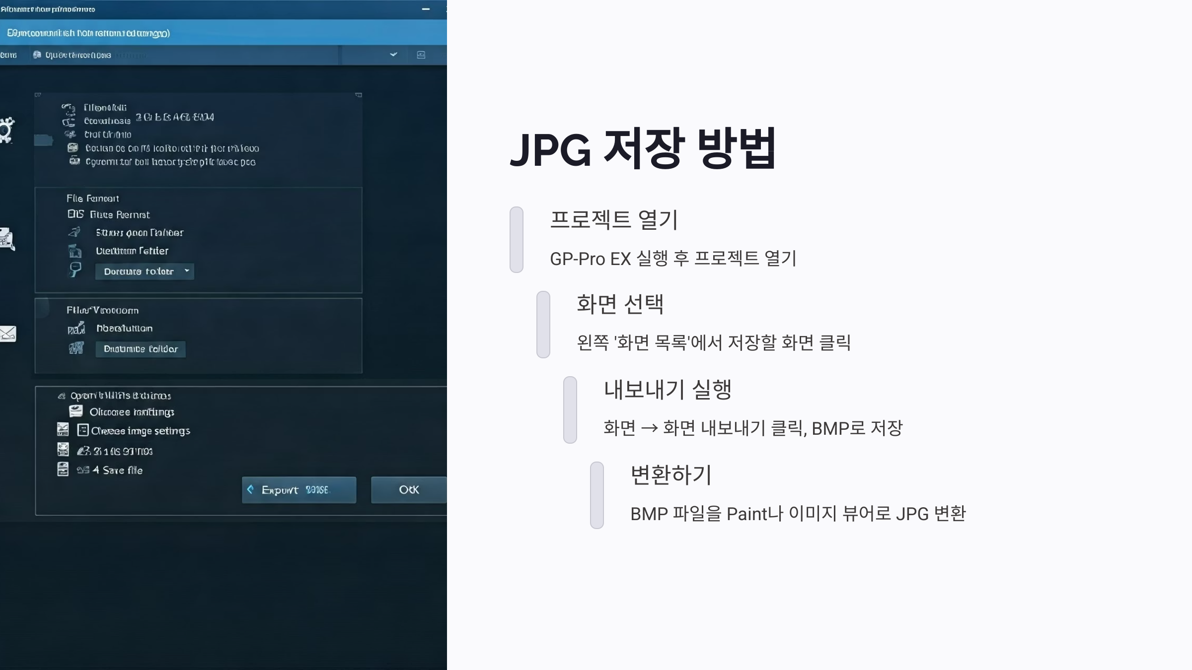 이제 본격적으로 GP-Pro EX에서 작화 화면을 JPG로 저장하는 방법을 알려드릴게요!