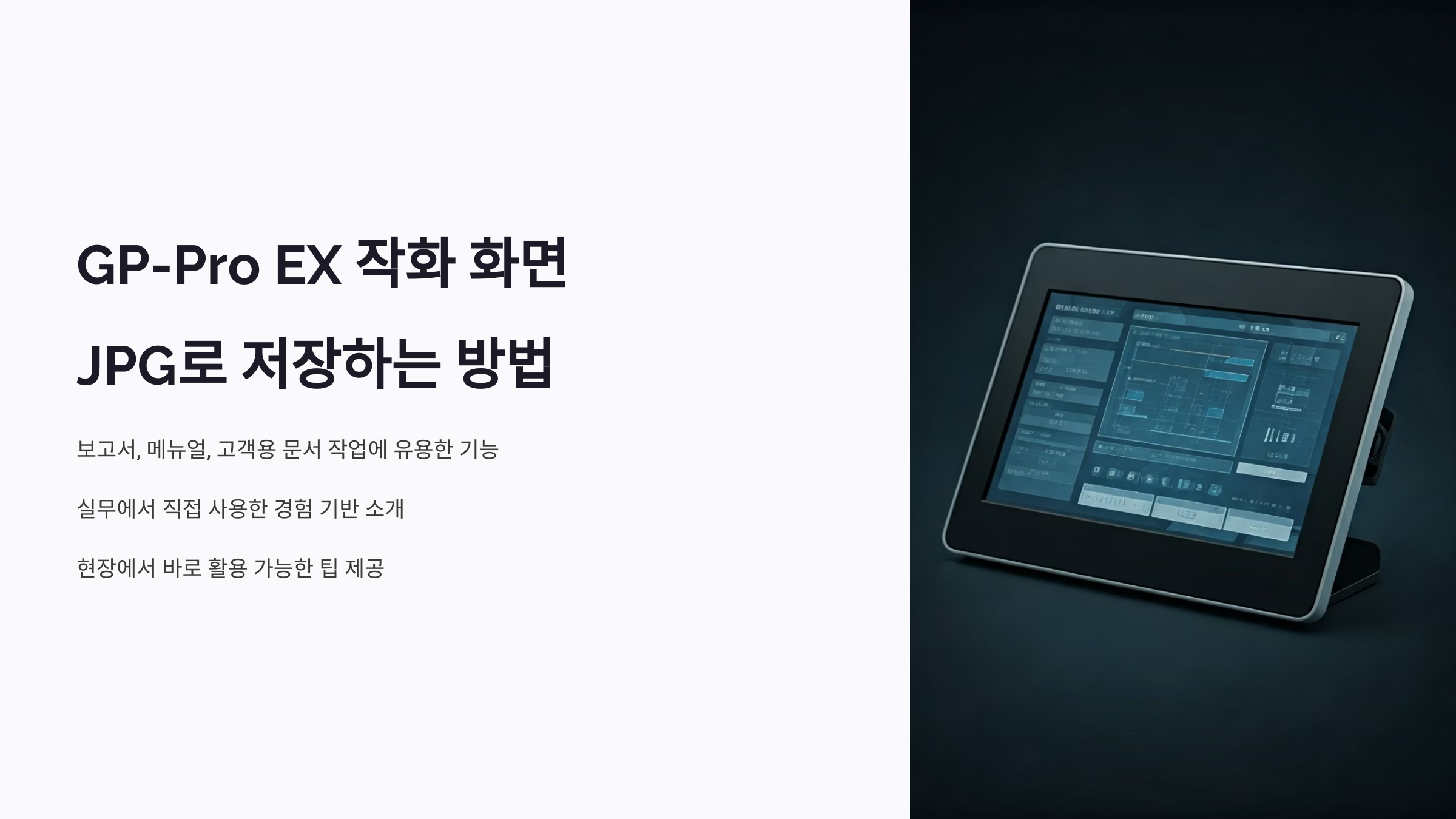 Pro-face GP-Pro EX에서 작화 화면을 JPG로 저장하는 방법은 생각보다 간단하지만, 이걸 알고 있는 분이 많지 않더라고요. 저도 보고서 만들 때 일일이 스크린샷 찍다가 이 방법을 알고 나서 작업 속도가 두 배는 빨라졌습니다.
