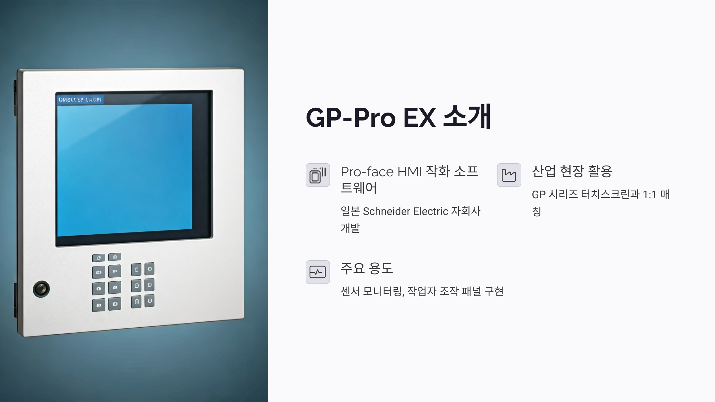 GP-Pro EX는 Pro-face HMI 화면을 설계하는 대표적인 작화 소프트웨어입니다. 일본 Schneider Electric 자회사에서 개발한 이 소프트웨어는 산업 현장에서 굉장히 많이 쓰이죠. 특히 GP 시리즈 터치스크린과 1:1 매칭되어, 프로그램을 짜고 바로 터치 모듈에 다운로드할 수 있습니다. 저도 센서 상태 모니터링, 작업자 조작 패널 등을 구현할 때 주로 사용합니다. 오늘 소개할 이미지 저장 기능은 프로그램에 내장되어 있는 툴 중 하나예요.