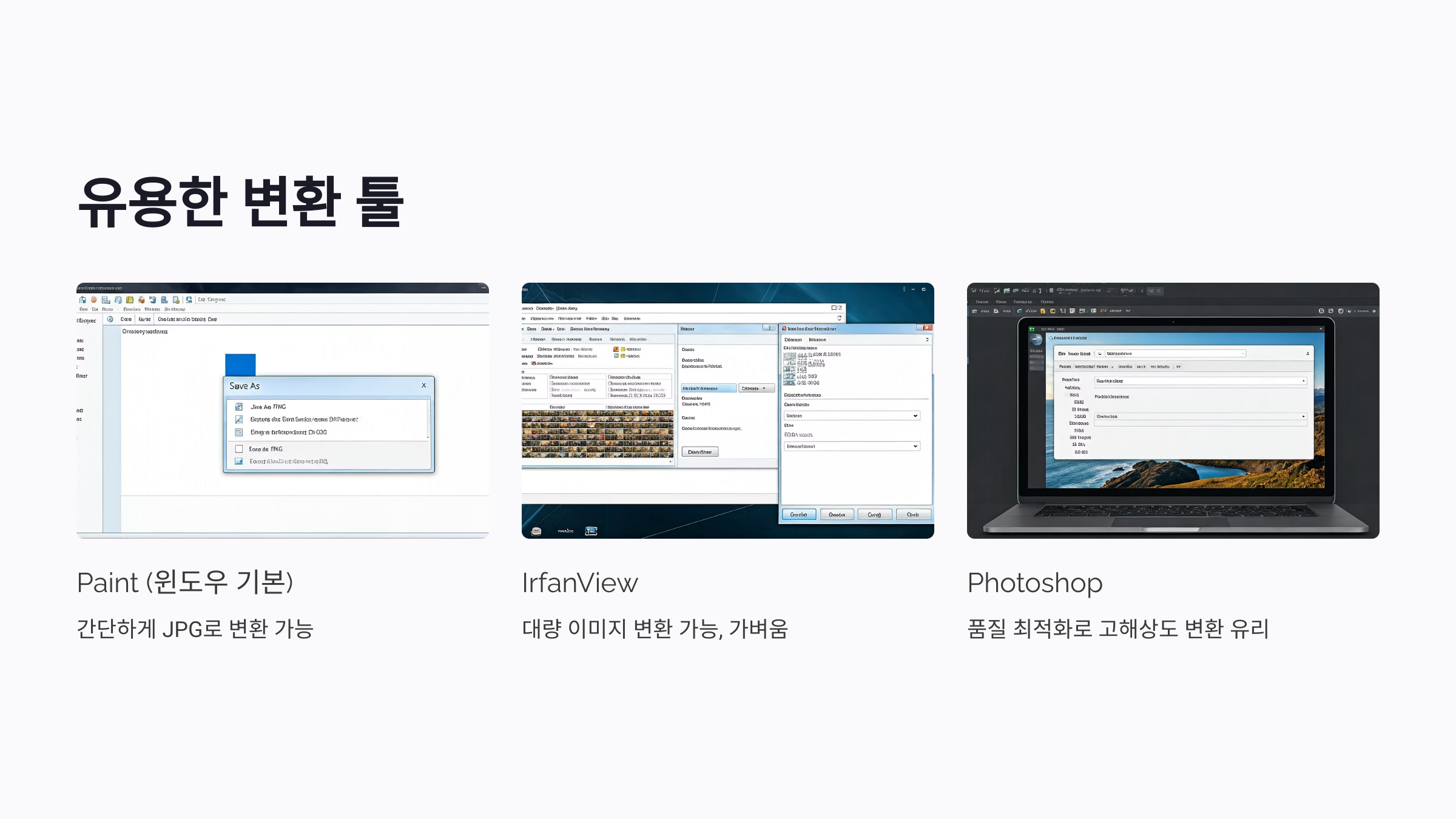 - 🖼️ Paint (윈도우 기본): 간단하게 JPG로 변환 가능
