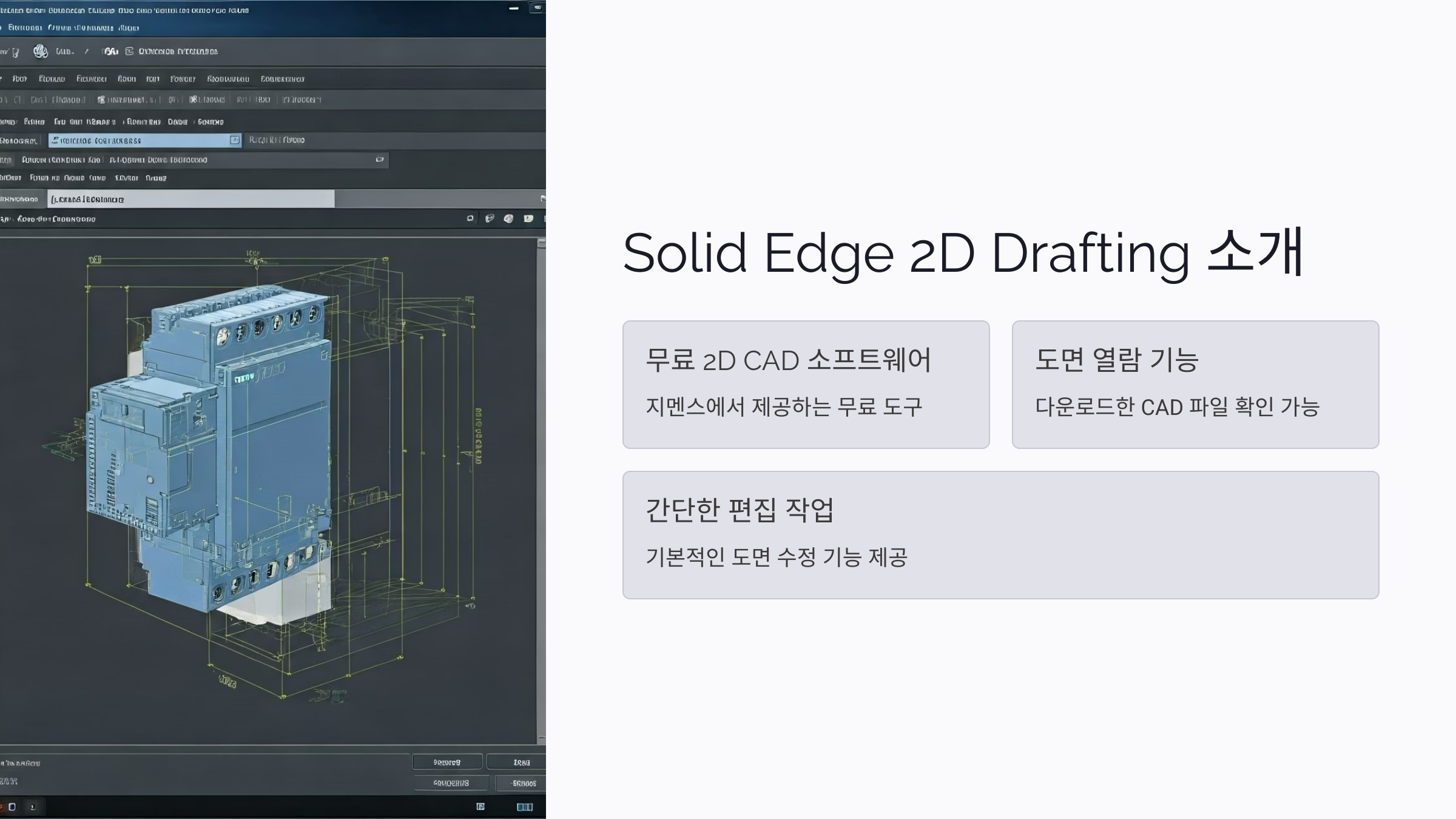지멘스는 무료 2D CAD 소프트웨어인 Solid Edge 2D Drafting을 제공합니다.