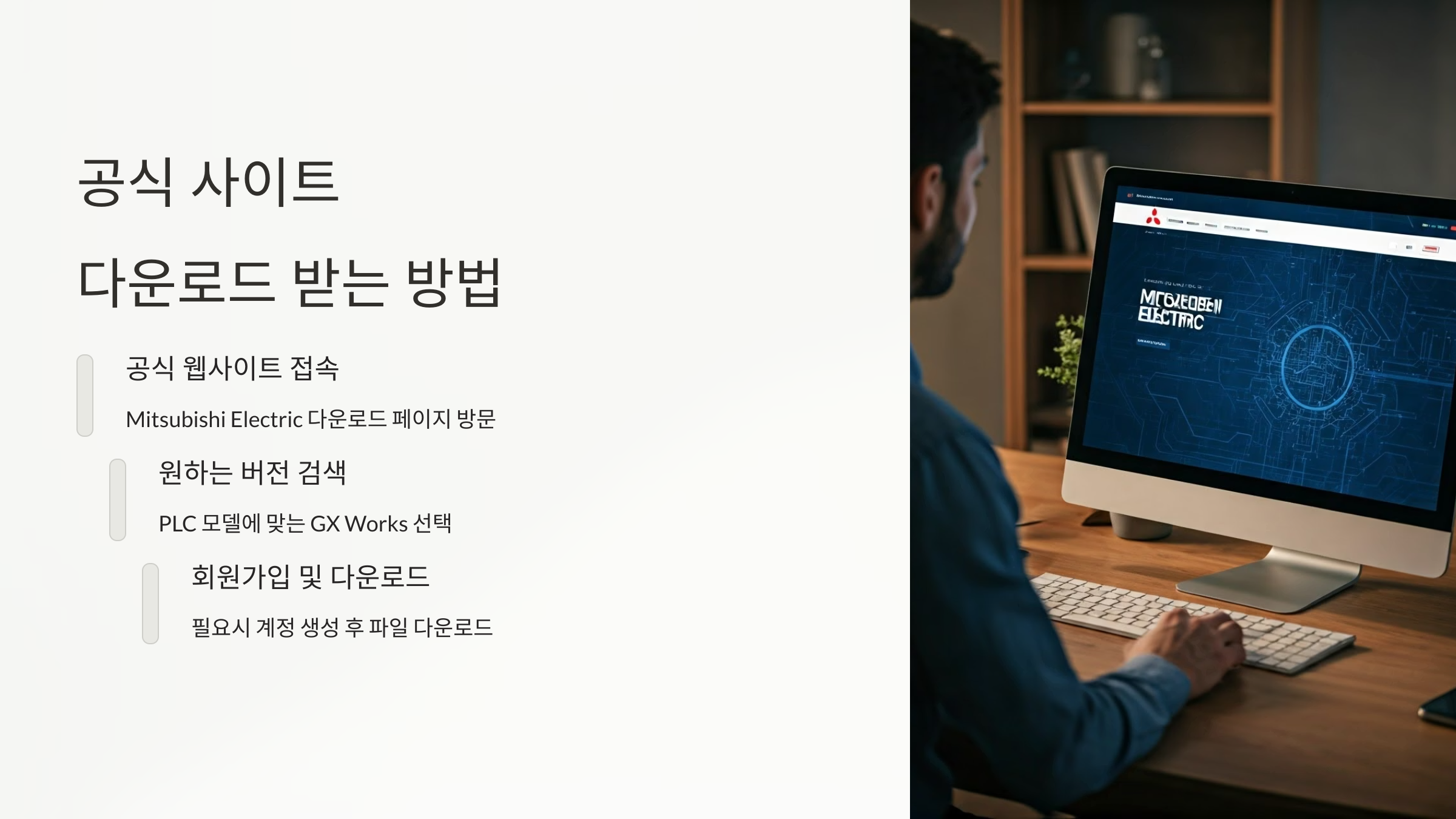 Mitsubishi PLC를 처음 접했을 때, 가장 먼저 부딪히는 벽은 소프트웨어 설치였습니다. GX Works를 설치하려고 하면 어디서부터 시작해야 할지 막막하더라고요. 공식 사이트는 영어로 되어 있고, 버전도 여러 가지라 혼란스러웠습니다. 그래서 직접 경험한 시행착오를 바탕으로, GX Works를 무료로 다운로드하고 설치하는 과정을 정리해보았습니다. 같은 고민을 하는 분들에게 작은 도움이 되었으면 합니다.