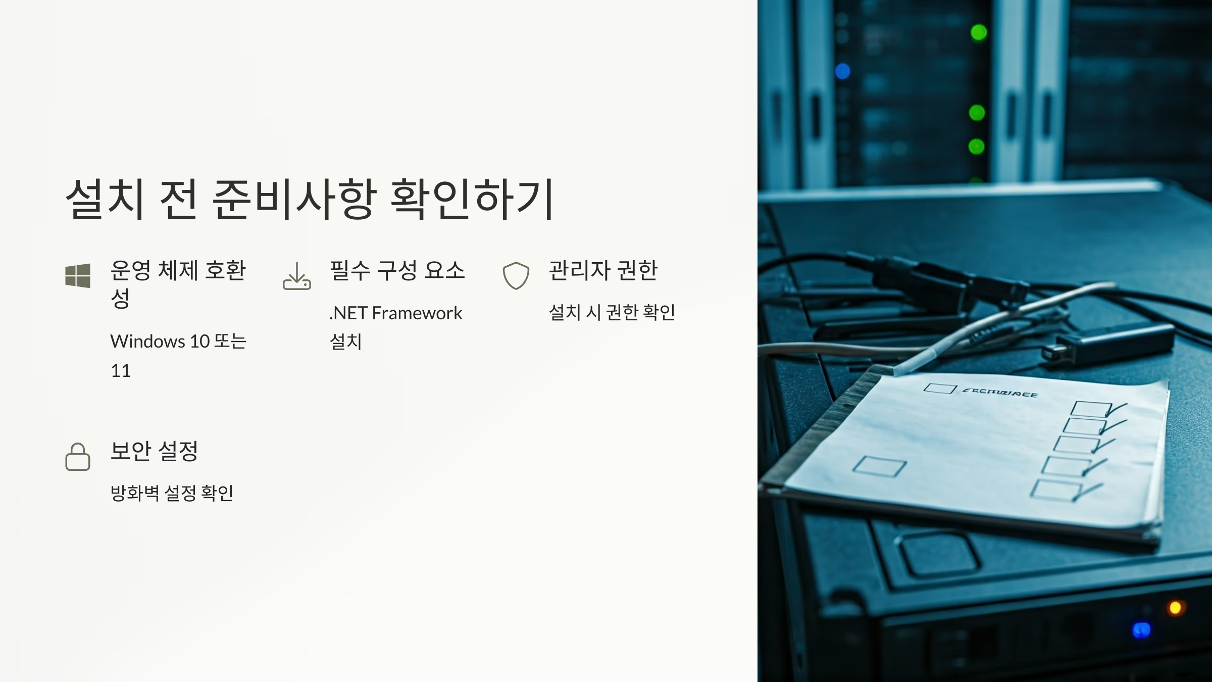 이러한 사항을 미리 확인하면 설치 과정에서 발생할 수 있는 문제를 예방할 수 있습니다.