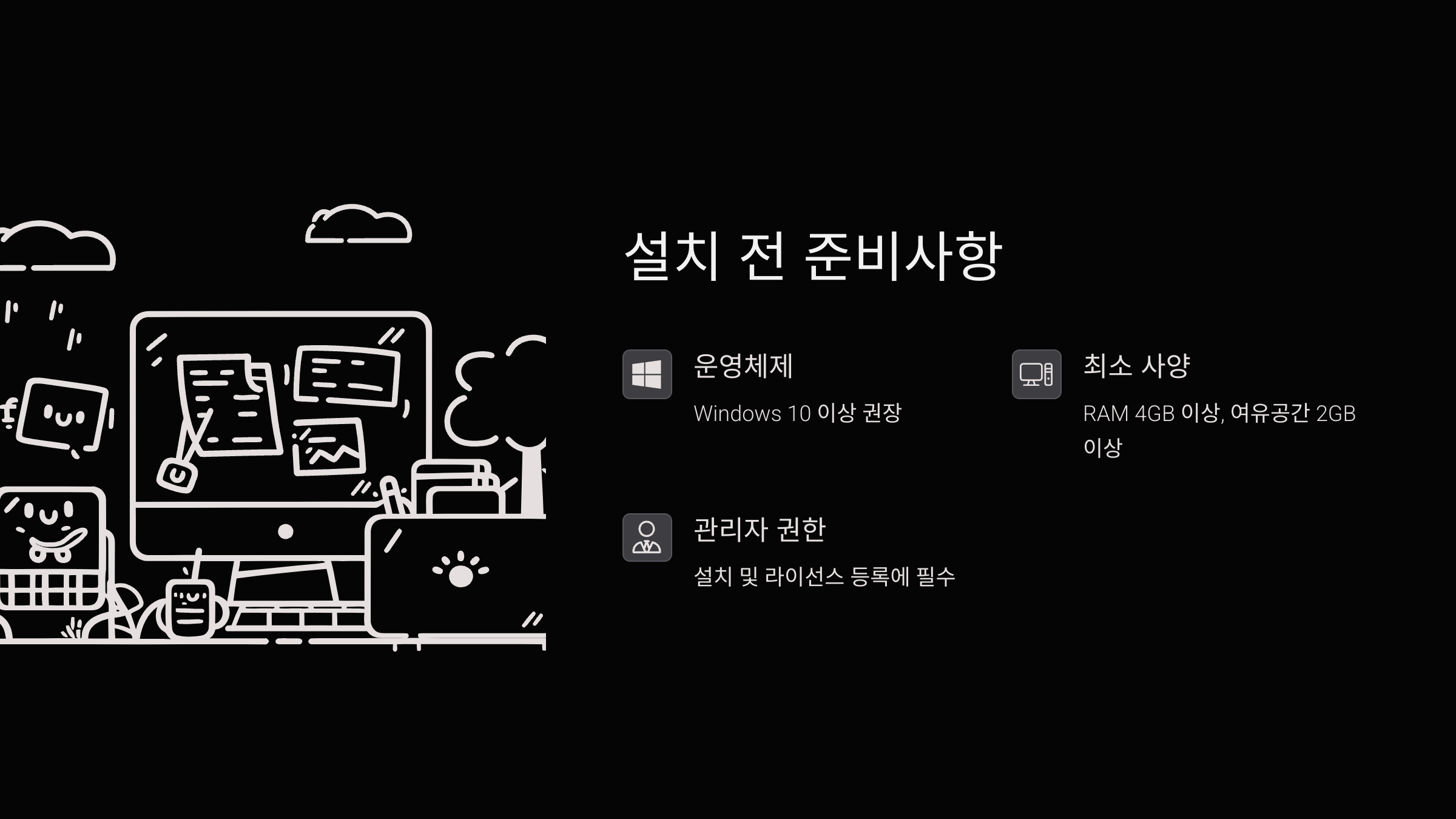설치 파일을 받기 전, 반드시 관리자 권한이 있는 계정으로 로그인하셔야 해요! 설치 중간에 권한 문제로 막히면 정말 번거롭거든요.