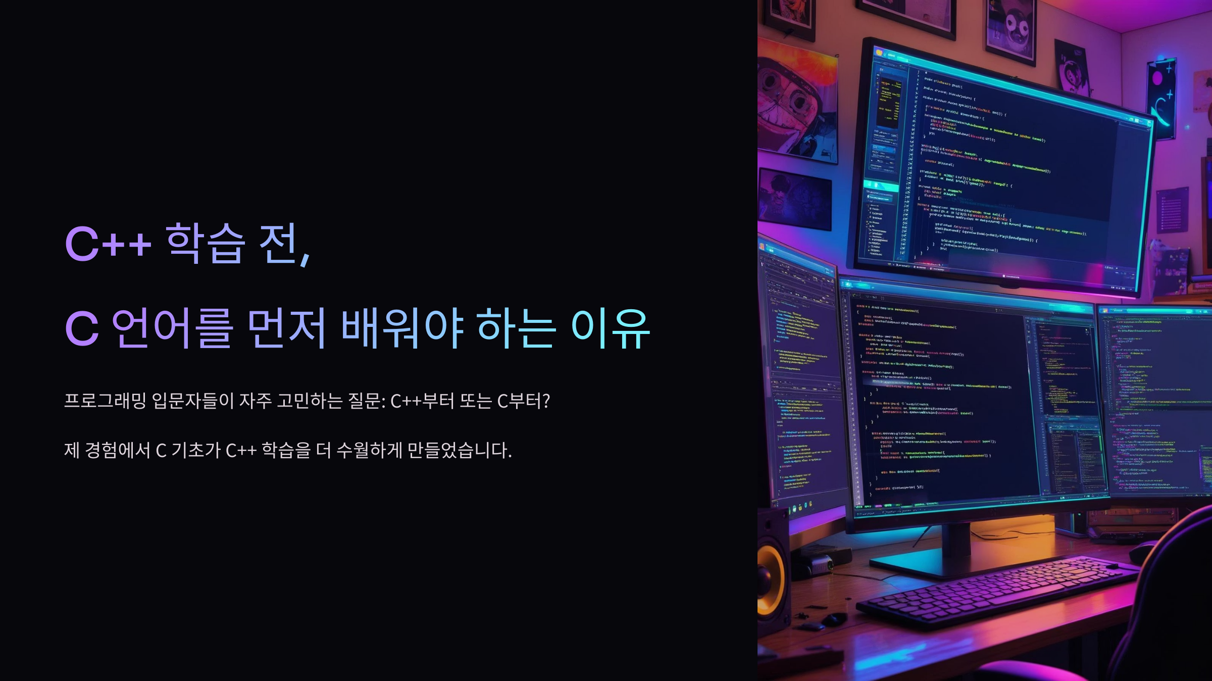 C 언어는 단순한 문법과 구조를 가지고 있지만, 프로그래밍의 핵심 개념들을 깊이 있게 다룰 수 있는 언어입니다. C++를 배우기 전에 C를 먼저 익히면, C++의 복잡한 개념들도 더 쉽게 이해할 수 있고, 프로그래밍 전반에 대한 깊은 통찰을 얻을 수 있습니다. 따라서 C++를 배우기 전에 C를 먼저 배우는 것을 강력히 추천합니다.