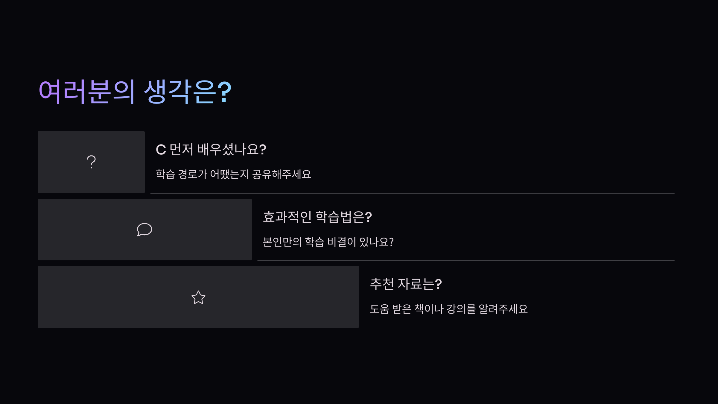 여러분은 C++를 배우기 전에 C 언어를 먼저 배우는 것에 대해 어떻게 생각하시나요? 혹시 C 언어를 먼저 배우고 C++를 학습하신 경험이 있으신가요? 여러분의 생각이나 경험을 댓글로 공유해주세요!