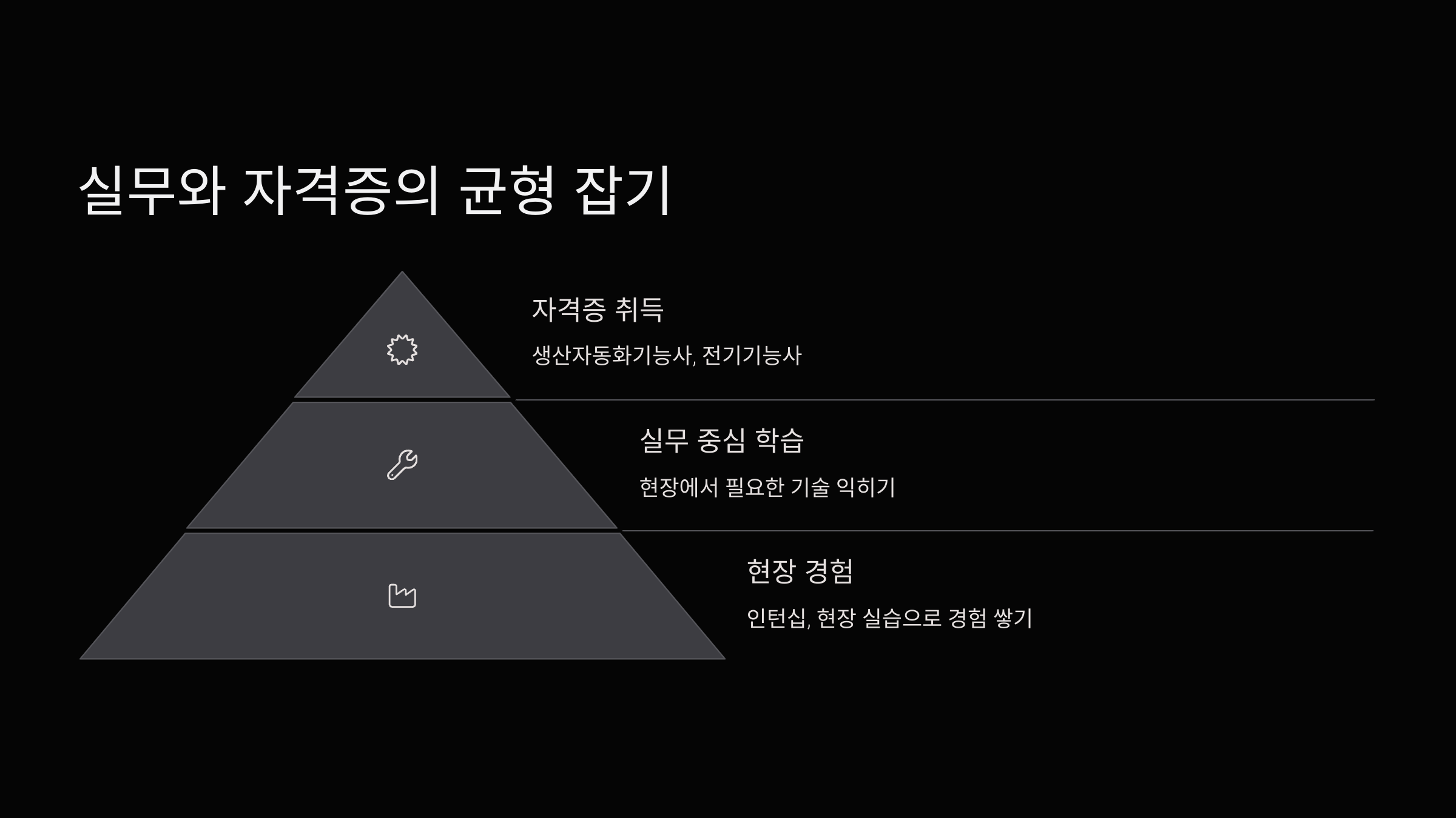 - 자격증 취득: 생산자동화기능사, 전기기능사 등 관련 자격증을 취득하면 취업 시 유리하게 작용합니다.