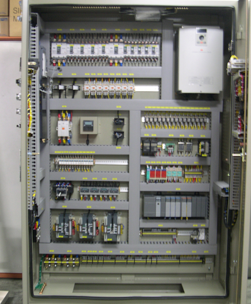 PLC란 'Programmable Logic Controller'를 줄인 말이다. 디지털 또는 아날로그 입출력 모듈을 통하여 로직, 시퀀싱, 타이밍, 카운팅, 연산과 같은 특수한 기능을 수행하기 위하여 프로그램이 가능한 메모리를 사용하고 여러가지 종유의 기계나 프로세서를 제어하는 디지털 동작의 전자 장치이다. 여러가지 종류의 기계나 프로세서를 제어하는 디지털 동작의 전자 장치를 의미한다. 이미지에서 확인할 수 있듯 전기 판넬에서 릴레이, 타이머, 카운터, MC 등 아직은 PLC를 사용하지 않고 제작한 컨트롤 판넬이다. 다음과 같이 프로그램을 사용하지 않고 동작시키는 것을 릴레이 제어라고 하는데, 릴레이 제어는 시퀀스 제어라고도 표현한다. 릴레이 제어는 비교적 간단한 설비 구동 시 저렴한 가격으로 제어를 할 수 있다는 것이 장점이지만 추가적으로 디바이스 확장을 할 경우에는 판넬의 부피가 커지고 전기선을 다시 연결해야하며 제거되어야 하므로 작업이 번거롭고 시간이 아주 오래 걸린다. 반대로 PLC 제어일 경우에는 PLC 카드를 추가로 사용하여 아주 간단하게 확장을 시킬 수 있다. 릴레이 제어(시퀀스 제어)의 고장 시에는 원인을 찾기 힘들고 뒤처리가 번거롭다. 반대로 PLC 제어는 에러 발견 및 조치가 아주 간편하다.