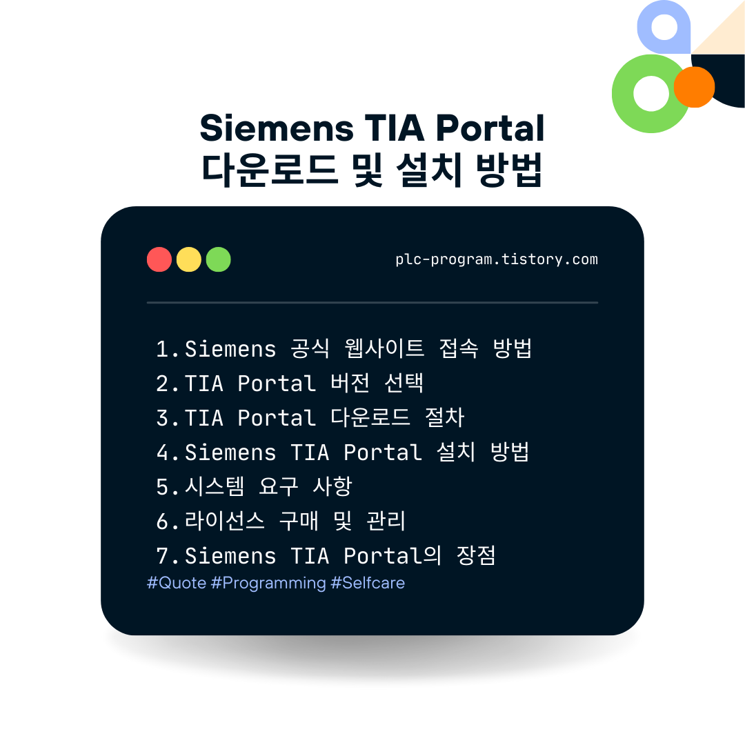 Siemens TIA Portal은 산업 자동화를 위한 통합 소프트웨어로, PLC, HMI, 네트워크 구성 요소 등을 효율적으로 관리할 수 있답니다. 공식 웹사이트에서 다양한 버전을 다운로드할 수 있으며, 시스템 요구 사항을 충족한 후 설치하면 되는 방법이죠. Trial 버전은 21일 동안 사용할 수 있으며, 정식 라이선스를 구매하면 모든 기능을 영구적으로 사용할 수 있답니다.