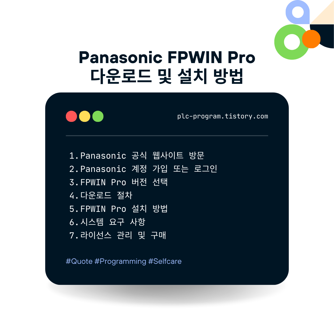 Panasonic FPWIN Pro는 Panasonic PLC(Programmable Logic Controller)를 프로그래밍하는 소프트웨어로, 사용자가 복잡한 자동화 시스템을 쉽게 설계하고 관리할 수 있도록 도와줍니다. FPWIN Pro를 다운로드하고 설치하는 방법을 아래에 단계별로 안내합니다.
