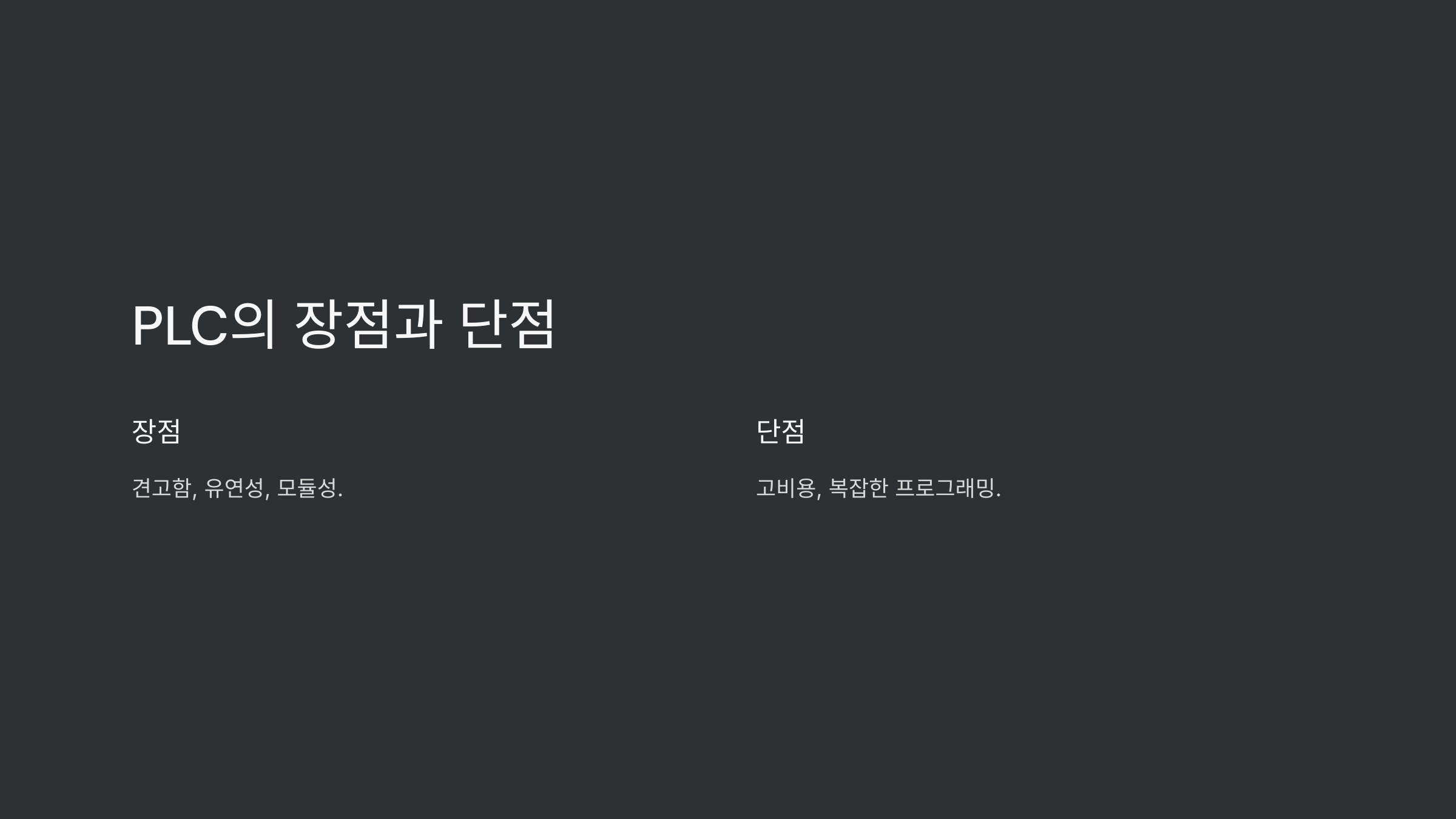 - 견고함: PLC는 산업 환경에서도 오랫동안 견딜 수 있는 강력한 설계를 가지고 있습니다.