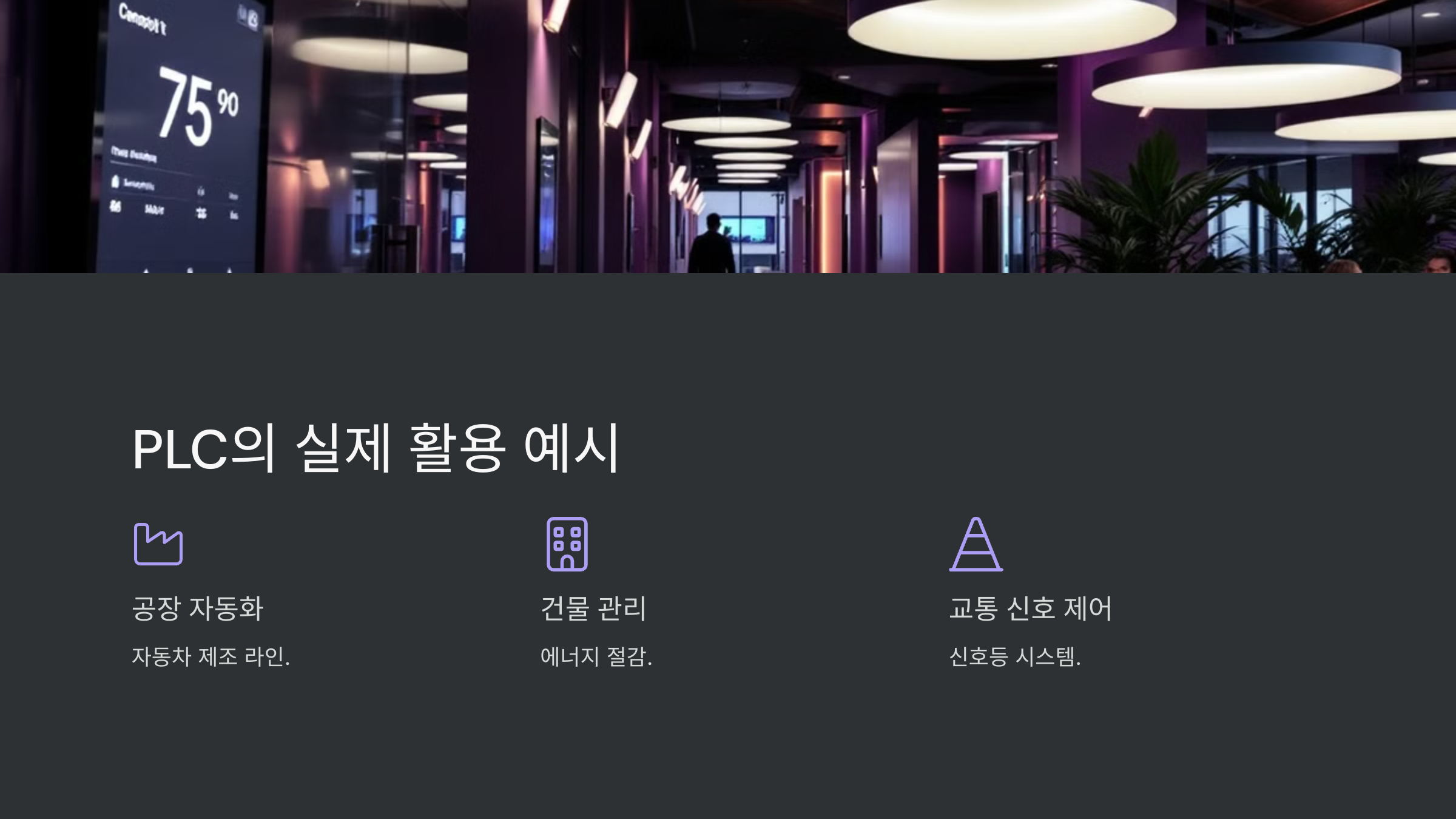 PLC는 건물 관리 시스템에서도 많이 사용됩니다. 에어컨, 조명, 승강기 등을 중앙에서 제어하여 에너지 절감과 운영 효율성을 극대화할 수 있습니다.