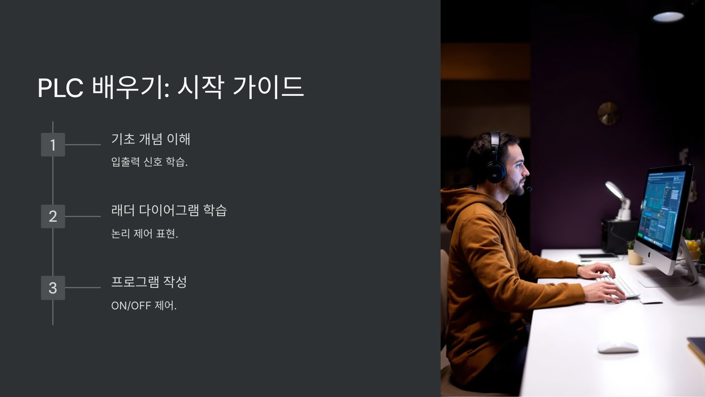 PLC에 처음 입문한다면 기본적인 학습 순서를 따르는 것이 중요합니다. 다음 단계별로 학습을 시작할 수 있습니다: