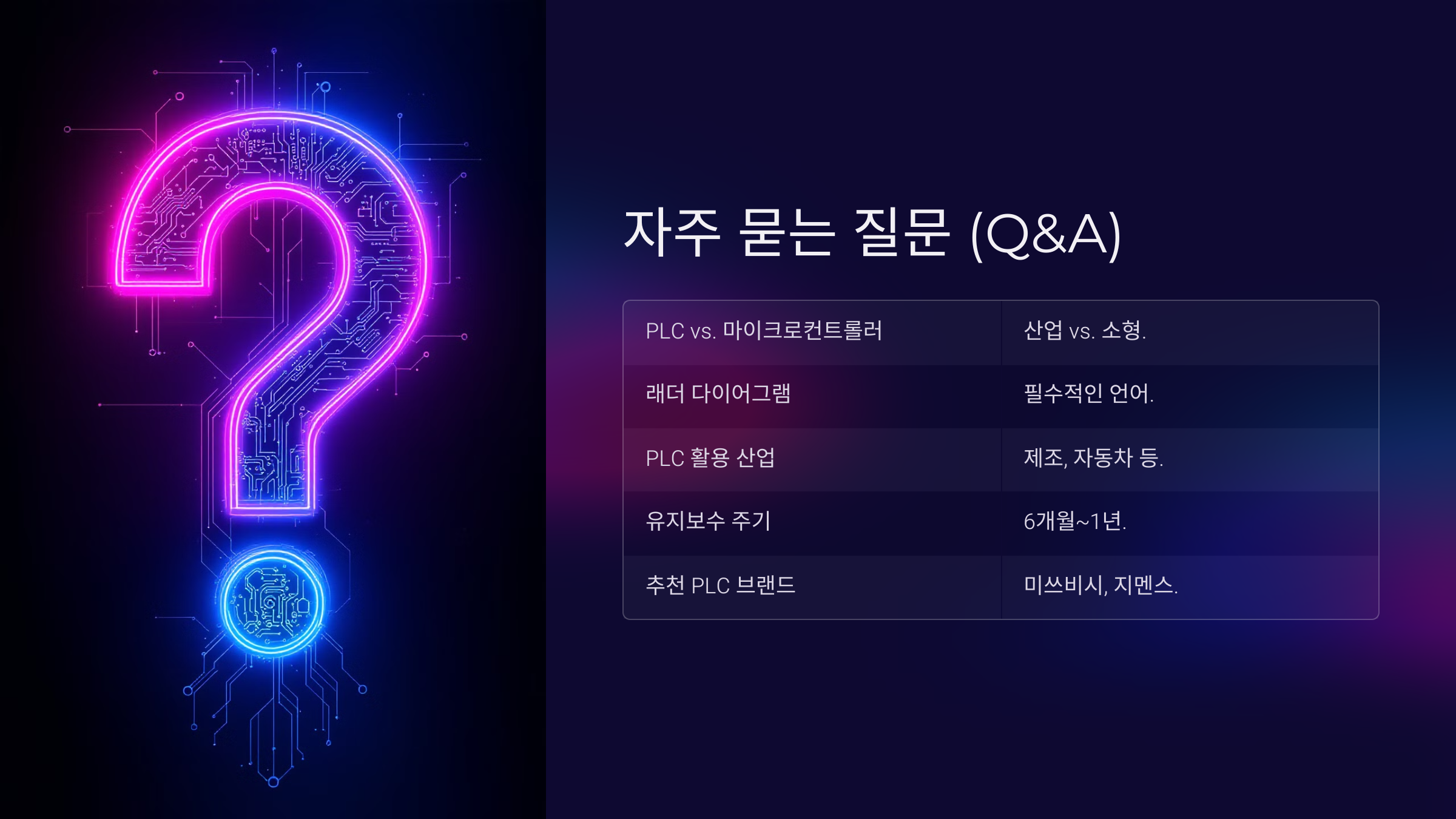 A4: PLC의 유지보수 주기는 환경과 사용 빈도에 따라 다릅니다. 일반적으로 6개월에서 1년마다 점검하며, 문제가 발생하면 즉시 수리하거나 프로그램을 업데이트해야 합니다.
