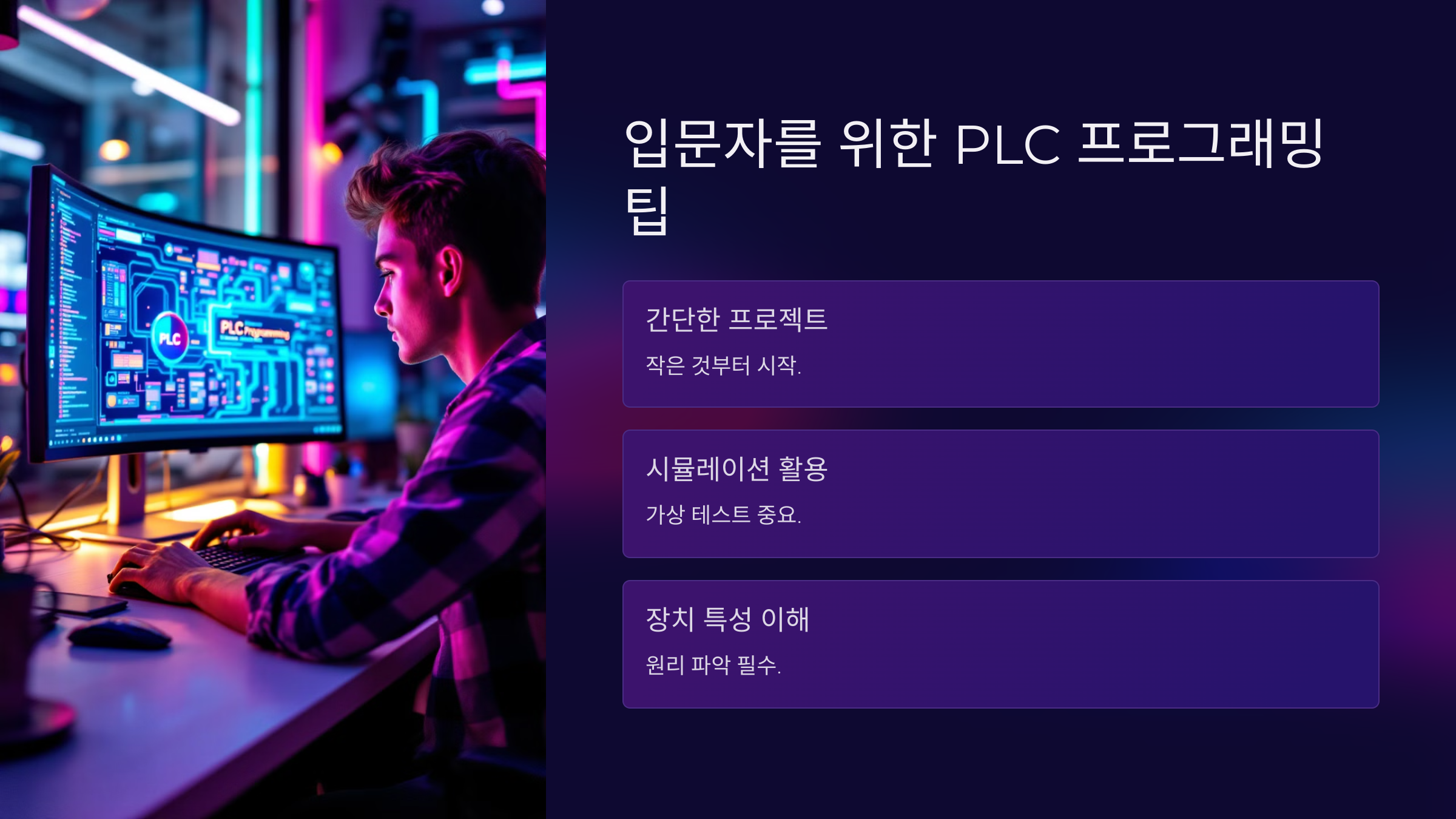 PLC는 처음 접하면 복잡해 보일 수 있지만, 몇 가지 기본적인 팁을 통해 쉽게 접근할 수 있습니다.