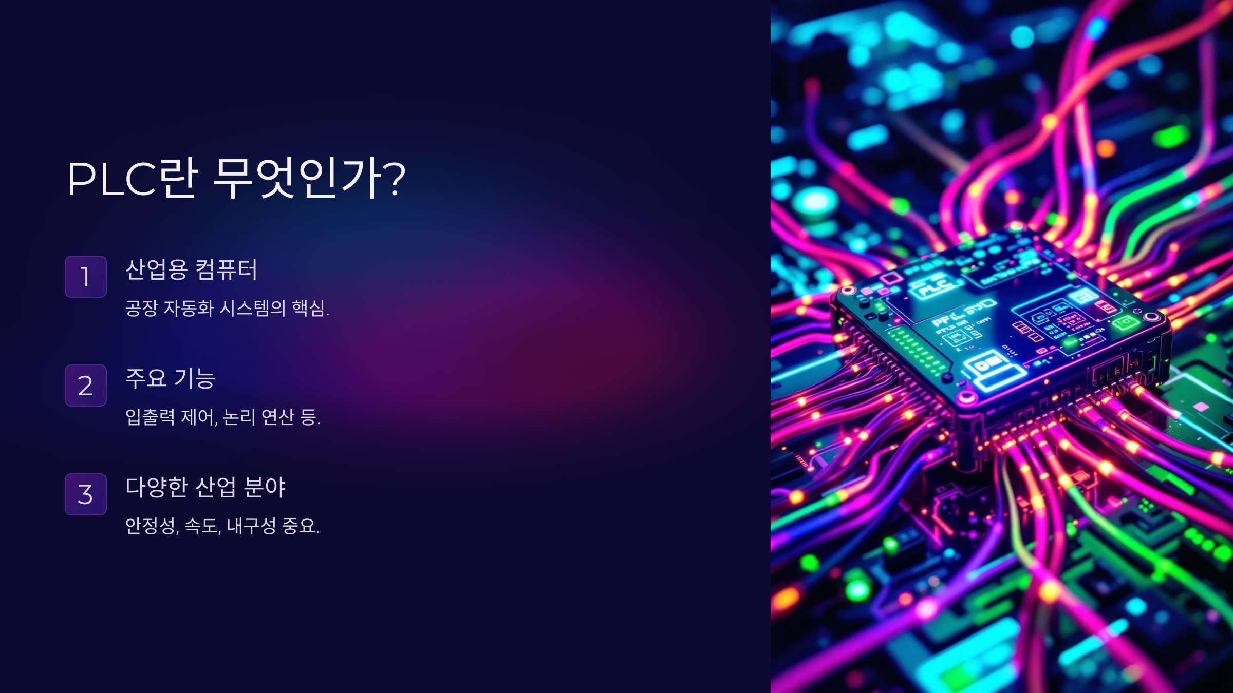 A3: PLC는 제조업, 자동차, 식품 가공, 화학 공장 등 다양한 산업 분야에서 사용됩니다. 특히 자동화된 공정에서 필수적인 장비입니다.