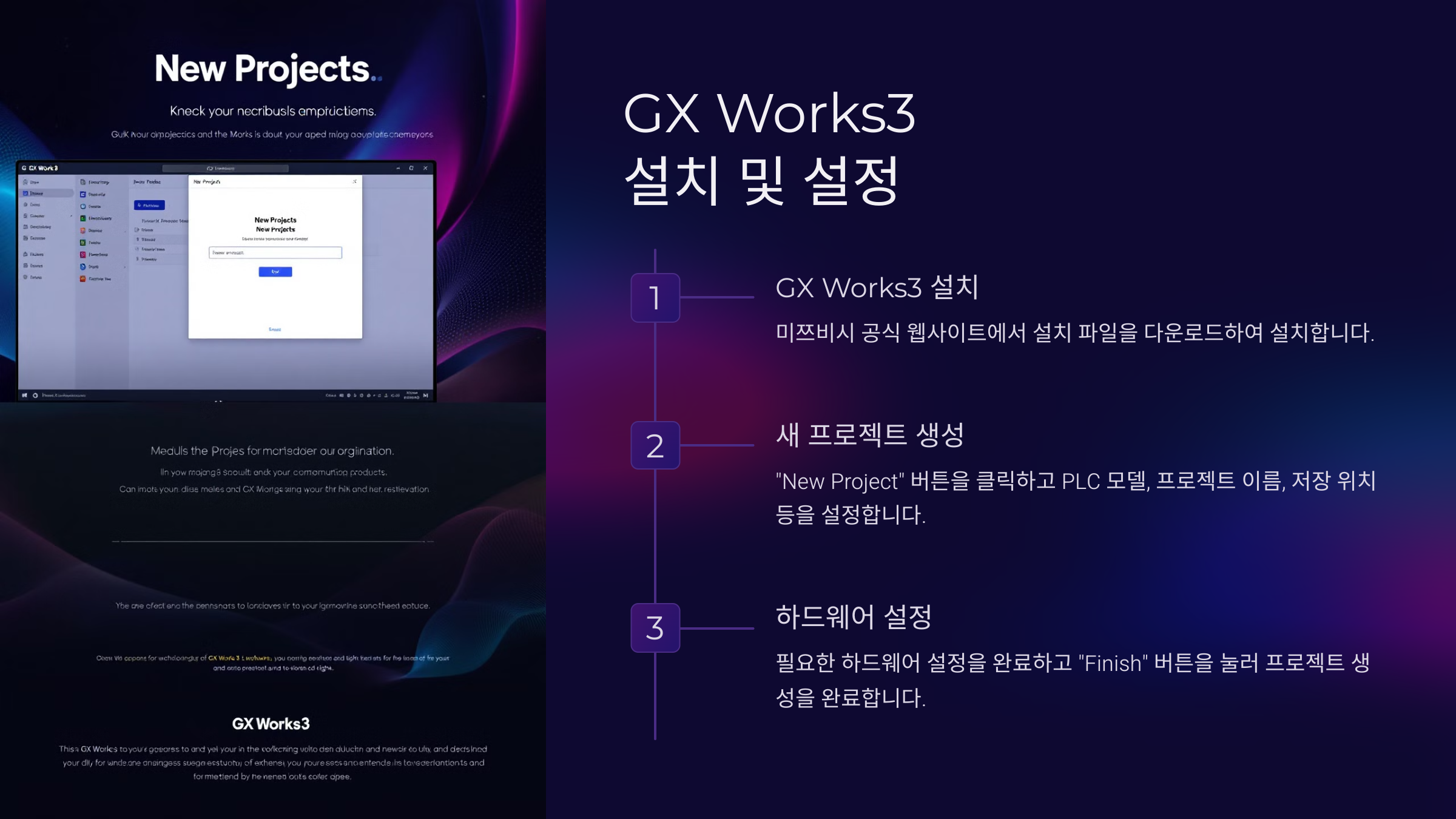 GX Works3를 사용하려면 먼저 소프트웨어를 설치하고 초기 설정을 해야 합니다. 아래 단계에 따라 시작해보세요.
