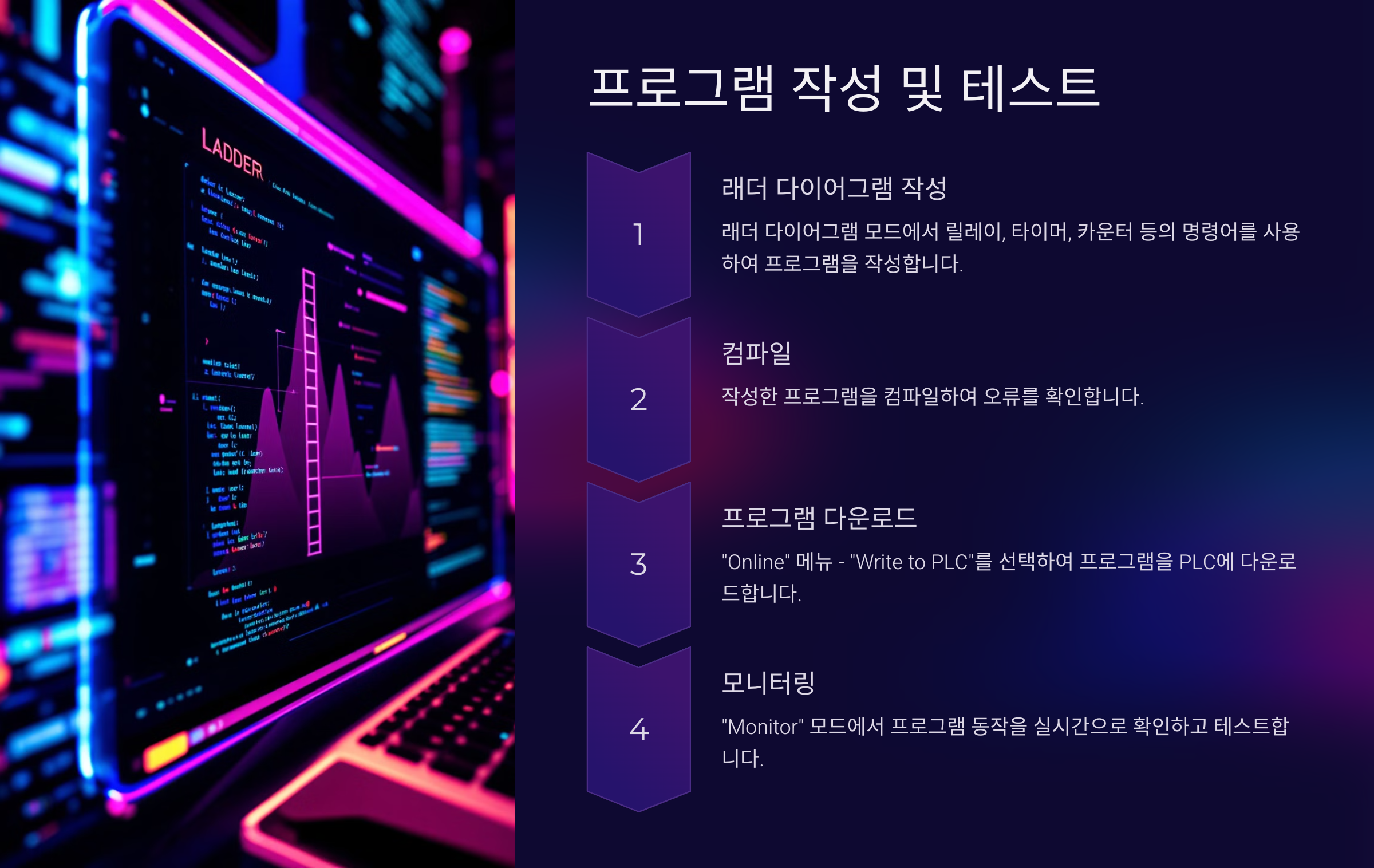 PLC에 연결이 완료되면, 간단한 프로그램을 작성하여 테스트할 수 있습니다.