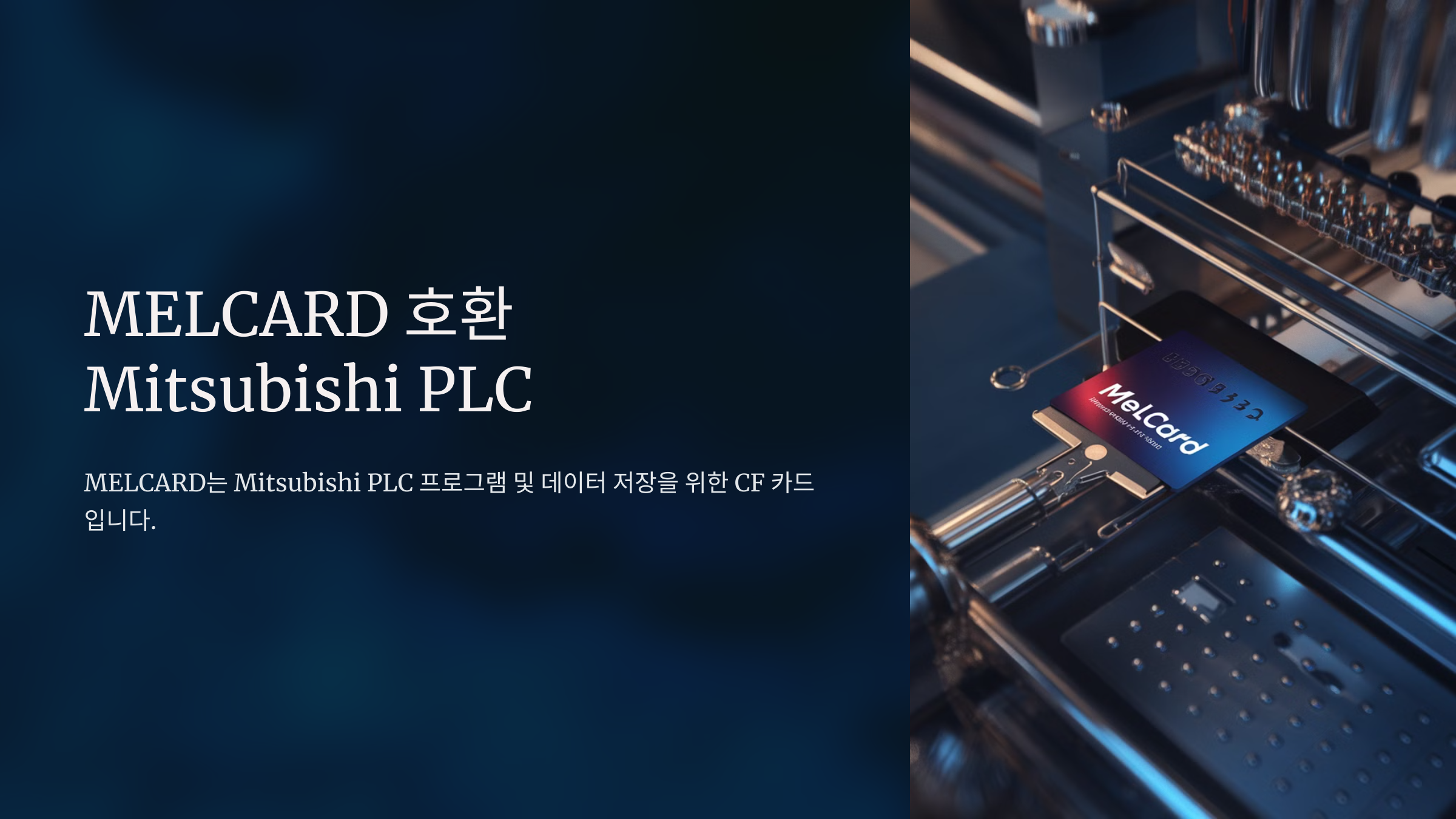 MELCARD는 Mitsubishi에서 제공하는 메모리 카드로, PLC 프로그램과 데이터를 저장하거나 백업할 수 있는 CF 카드 형식의 저장 장치입니다. 주로 PLC 프로그램 저장, 데이터 로깅, 백업 및 복원 등의 기능에 사용되며, 외부 메모리 슬롯이 있는 기종에서 사용됩니다.
