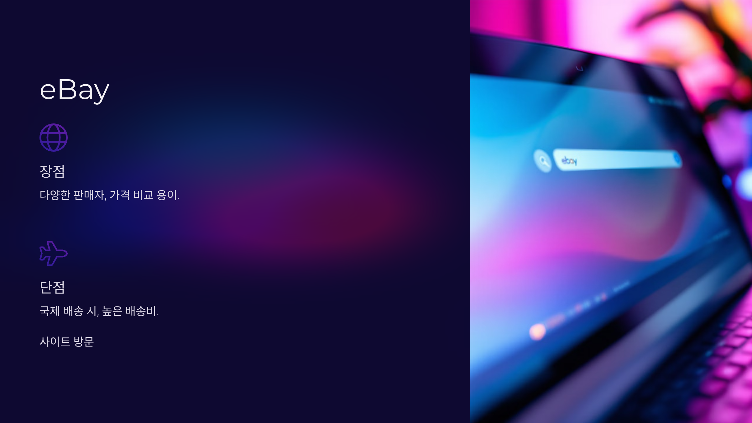 - 단점: 국제 배송 시 높은 배송비와 관세 문제 발생 가능.
