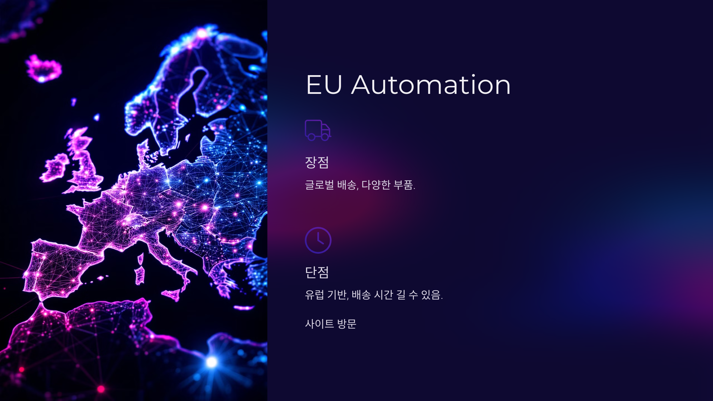- 장점: 글로벌 배송 지원 및 다양한 자동화 부품 라인업.