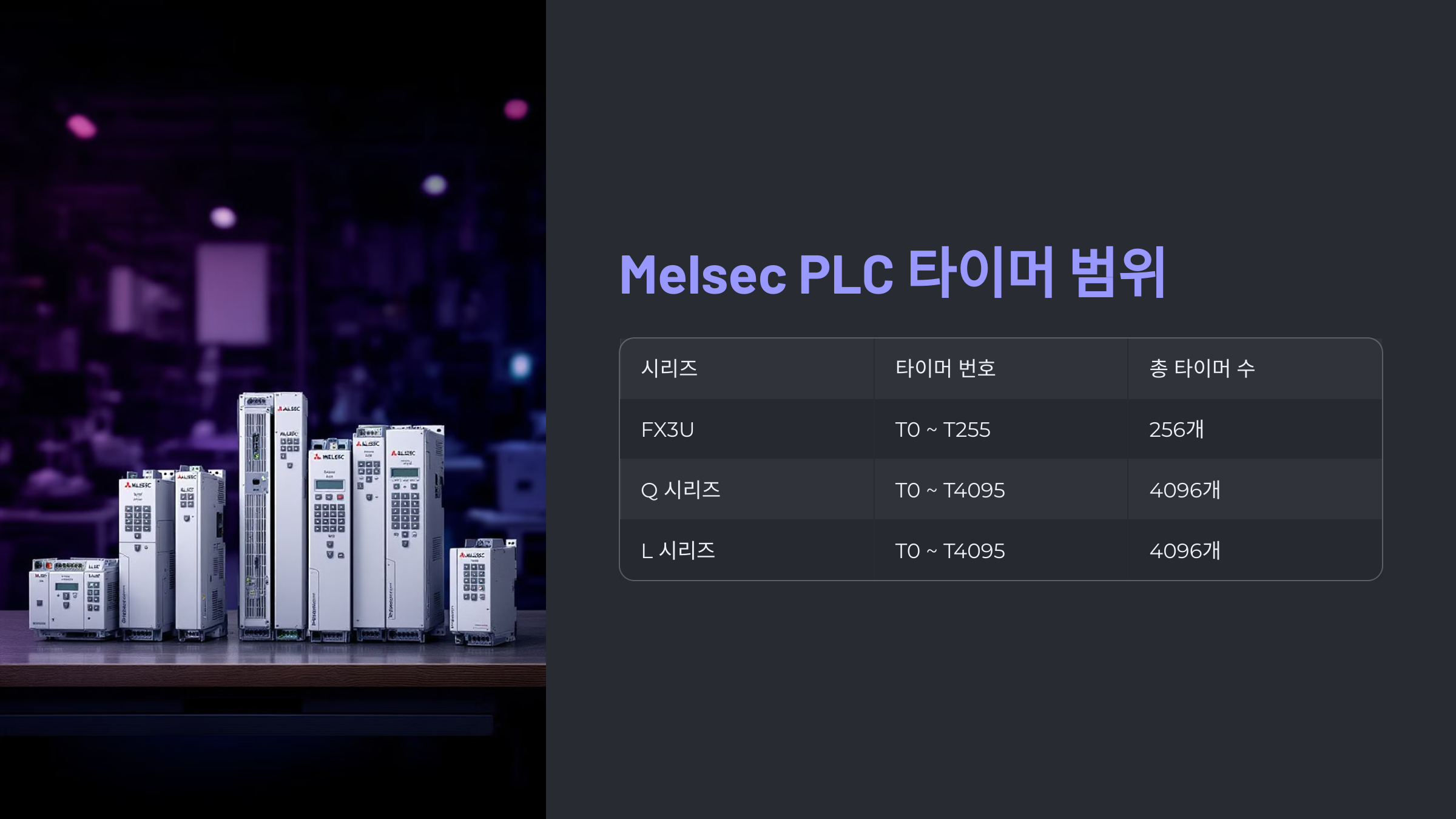 PLC(Programmable Logic Controller)는 자동화 시스템에서 중요한 역할을 합니다. 그 중에서도 Melsec PLC는 Mitsubishi에서 제공하는 매우 강력한 제어 시스템으로, 다양한 산업에서 널리 사용되고 있습니다. Melsec PLC에서 사용 가능한 타이머의 수와 그 범위를 설명하고, 각 모델별 차이점을 살펴보겠습니다.