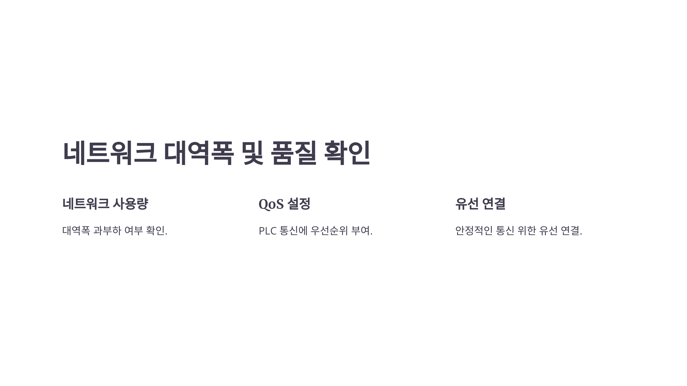 원격 모니터링 중 네트워크 대역폭이 부족하면 통신이 끊길 수 있습니다. PLC와 연결된 네트워크가 여러 장치에 의해 과부하가 걸리거나, 대역폭을 차지하는 다른 애플리케이션이 있다면 통신 속도가 느려지거나 중단될 수 있습니다.