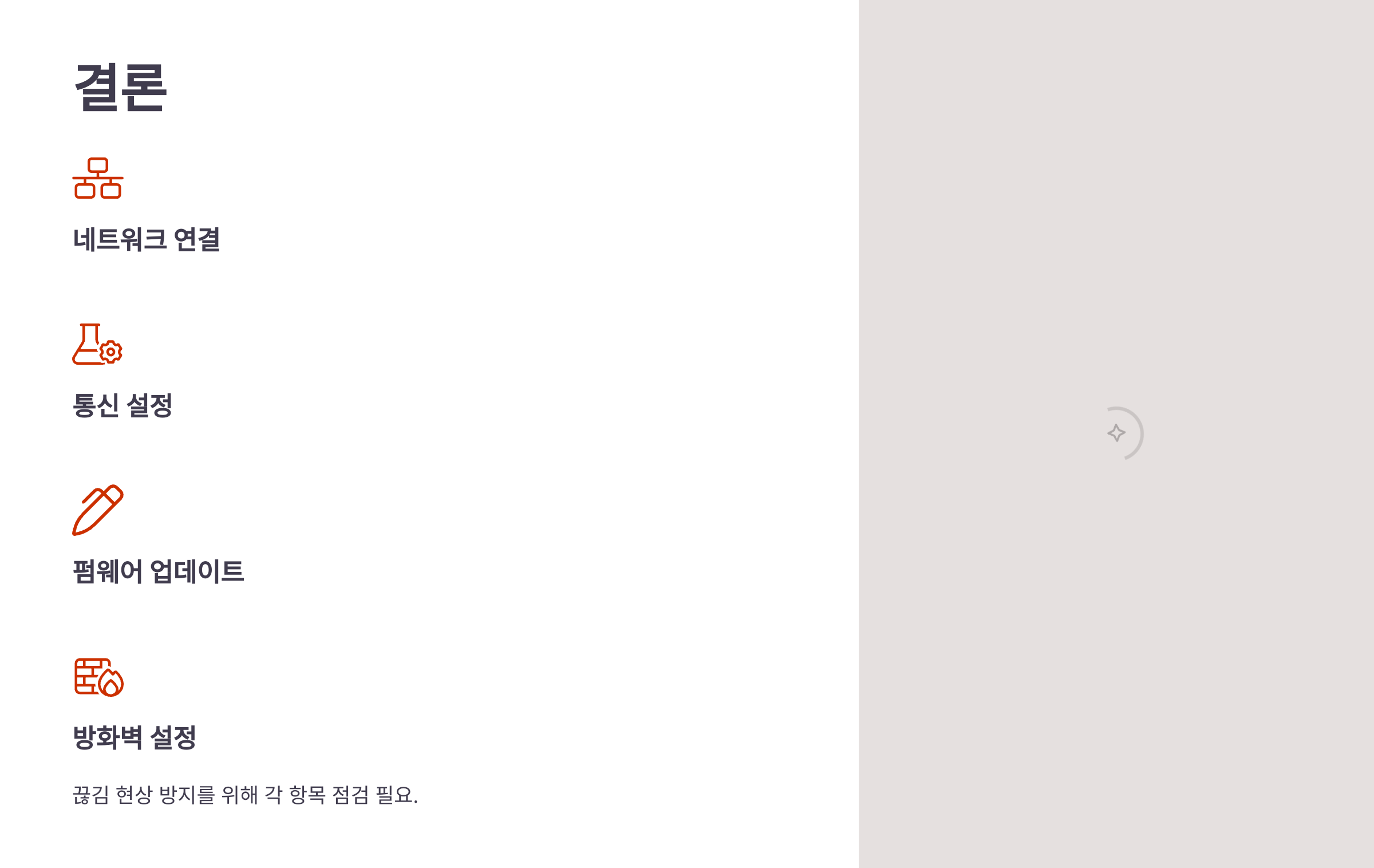 - 유선 연결 선호: 무선 연결보다 유선 연결을 사용하는 것이 더 안정적인 통신을 보장할 수 있습니다.