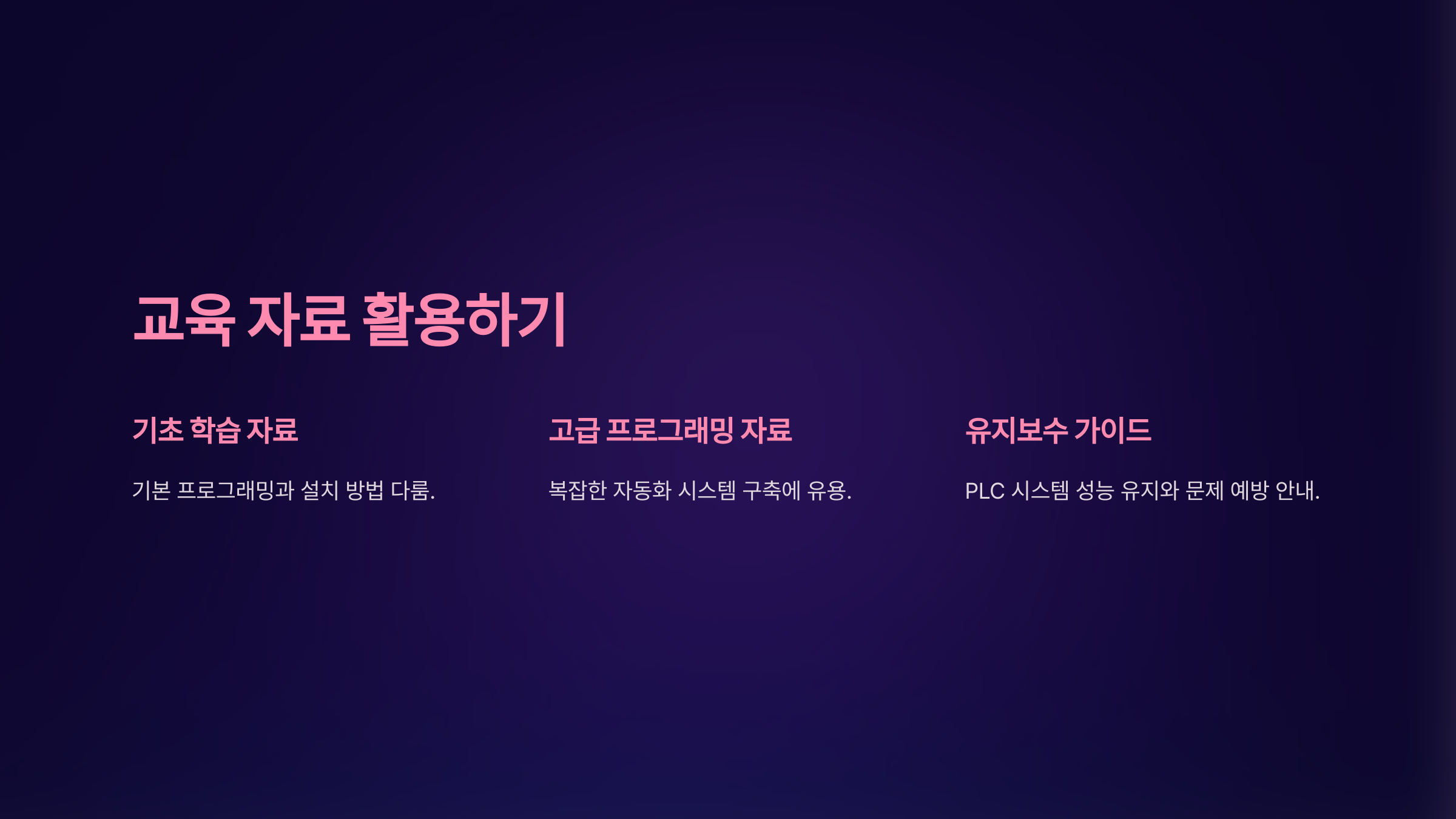 - 정기적 유지보수 가이드: PLC 시스템의 성능 유지와 문제 예방을 위한 유지보수 방법을 안내합니다.